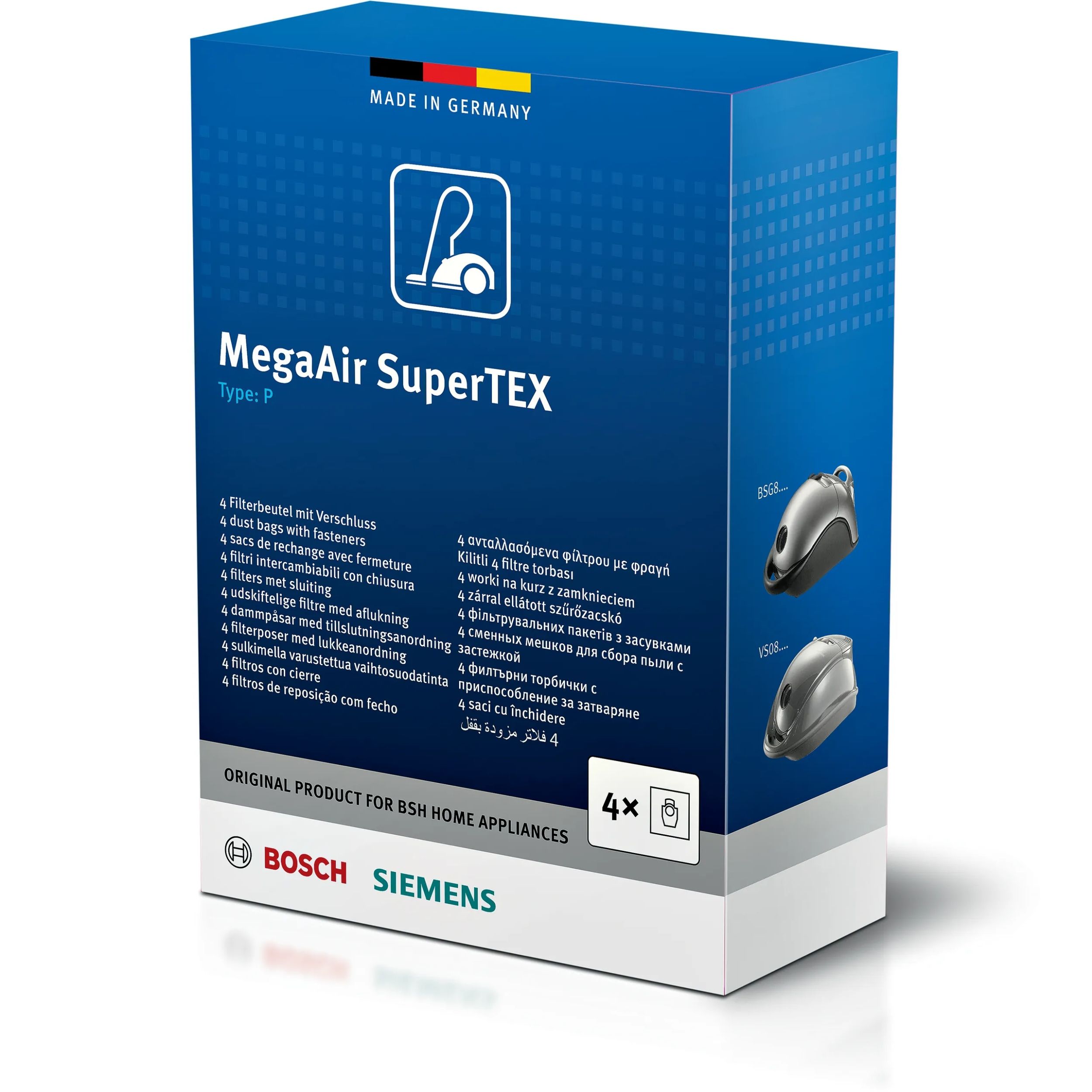 Sacii originali ajută la menținerea constantă a performanțelor ridicate de aspirare și protecția pe termen lung a aspiratorului. Nivel ridicat de igienă - 99,9% grad de filtrare al prafului fin și sistem de închidere igienică pentru îndepărtarea sacului. Performanță de curățare îmbunătățită - flux de aer îmbunătățit pentru rezultate de curățare excelente, chiar și atunci când sacul este plin. Rezistență la rupere - sacii originali de praf sunt deosebit de rezistenți datorită materialulu din care sunt fabricați. Performanță mărită cu până la 50% - mai puține schimbări ale sacului datorită capacității ridicate de aspirare. Conținut: 4 saci de praf + 1 filtru pentru motor.