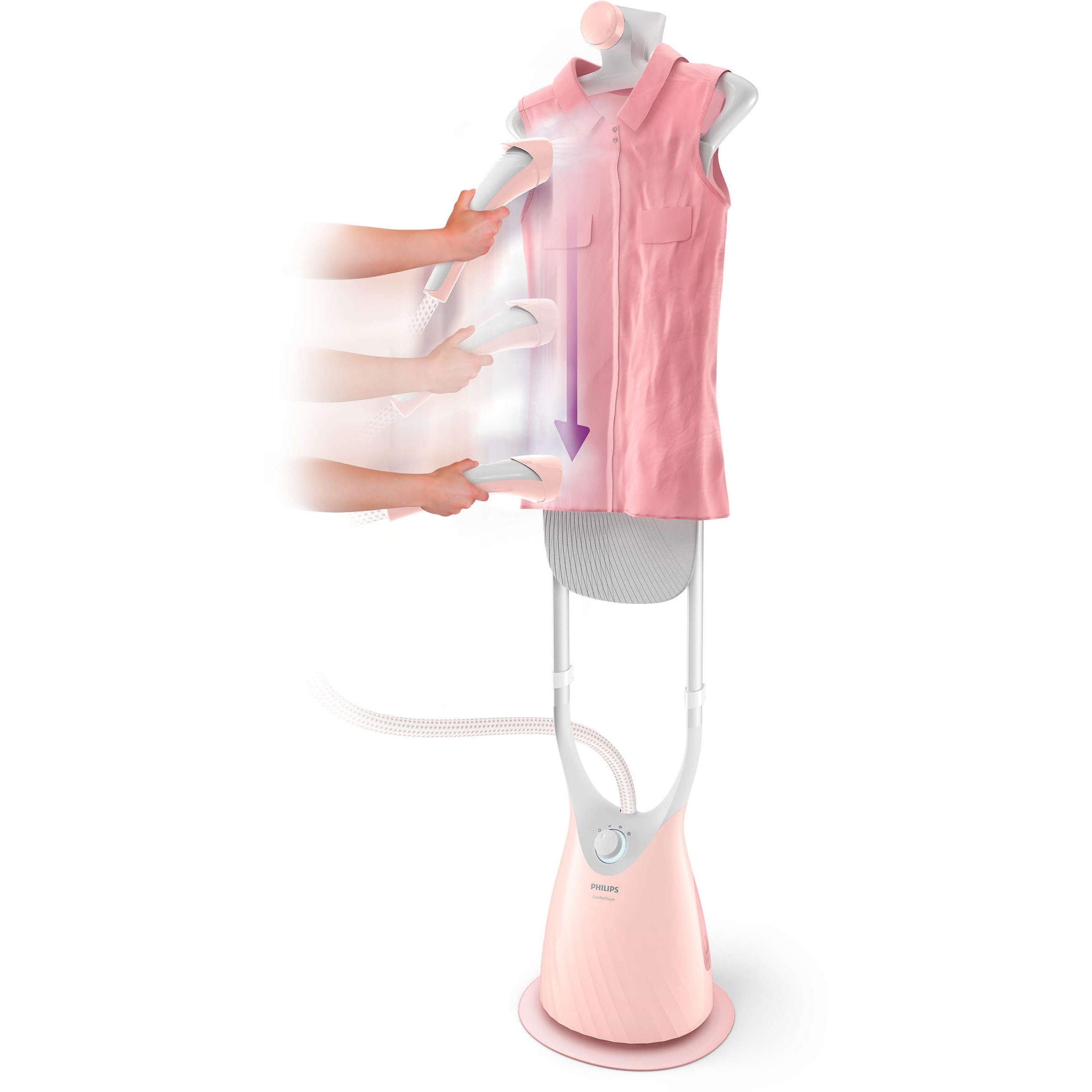 Aparat de călcat vertical cu abur Philips ComfortTouch GC552/40, 1800W, Continuu 35g/min, Gata în 45sec, Reglaj 3 trepte, Rezervor detașabil 1.8L, F 1.3m, C 1.6m, Mânușă, Perie