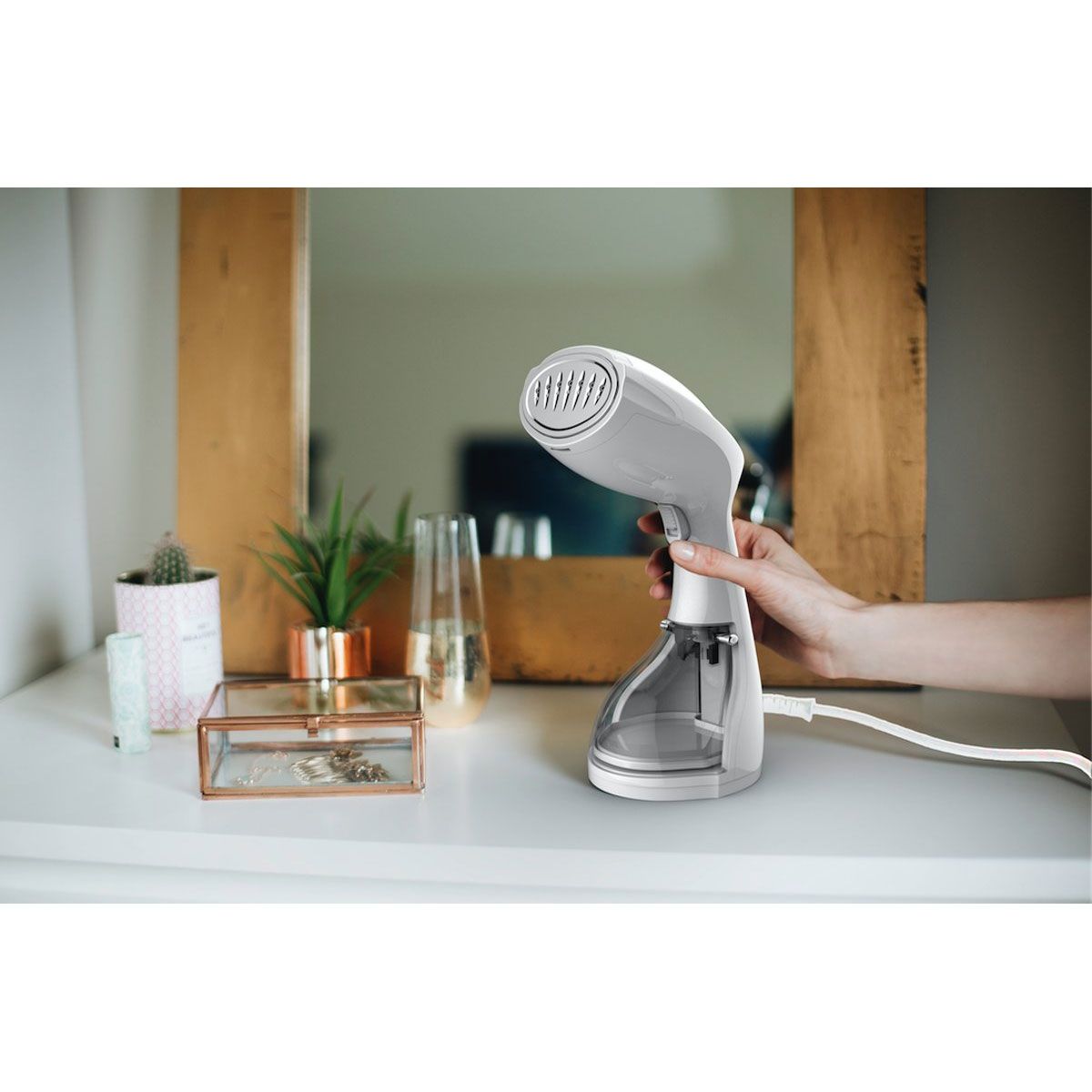 Compact, poate încăpea cu ușurință într-o valiză pentru a te urma în toate călătoriile tale. Cârligul elegant de la umeraș poate fi montat oriunde în cameră. Eficient chiar și pe materiale fragile: Datorită aburului său continuu (debit de abur de 24 g / min), S-Travel vă permite, de asemenea, să reîmprospătați și să eliminați toate mirosurile neplăcute de pe haine. Durata încălzirii este foarte rapidă, deoarece dispozitivul este gata în doar 30 de secunde. Întreținerea hainelor nu a fost niciodată mai ușoară. Produs fabricat în China.