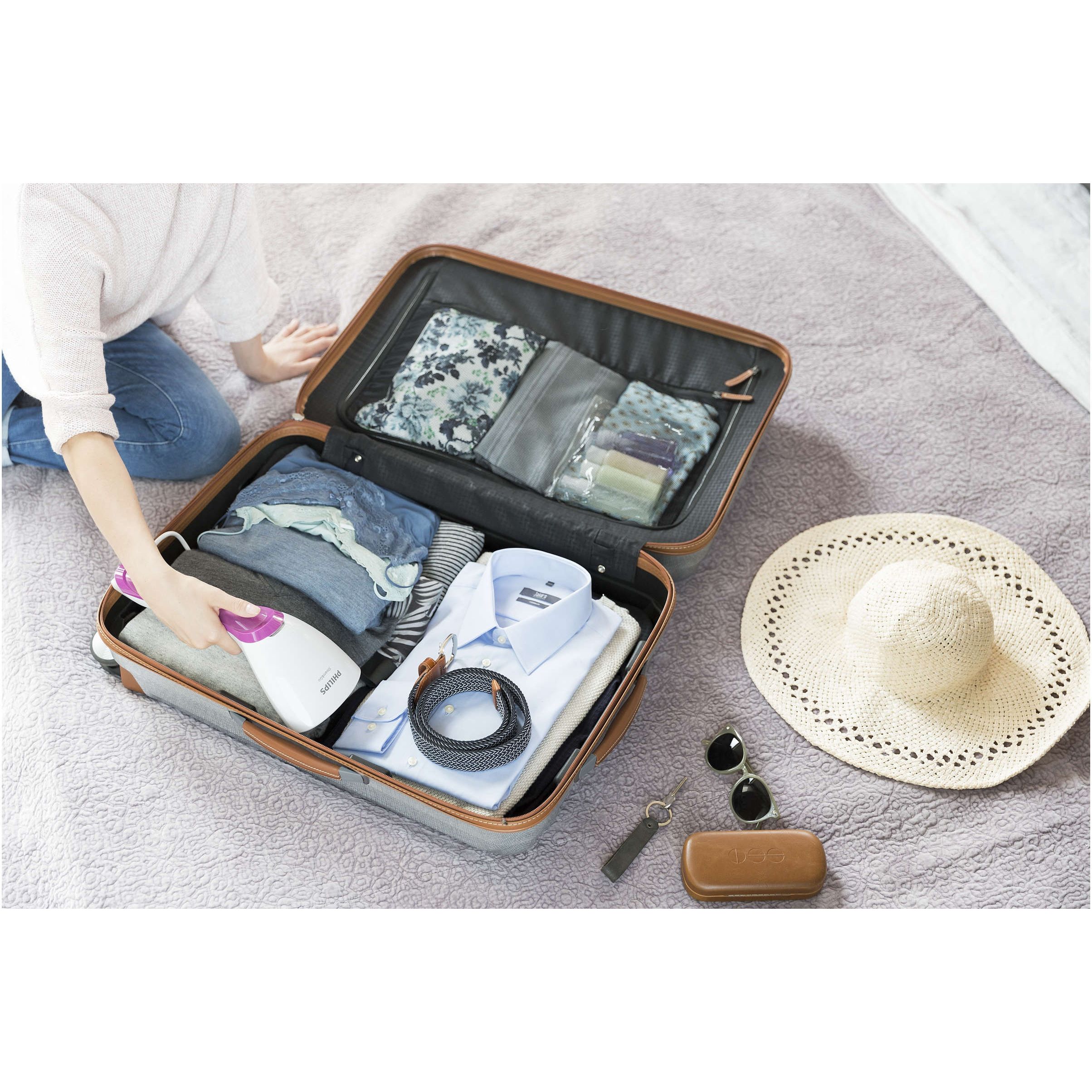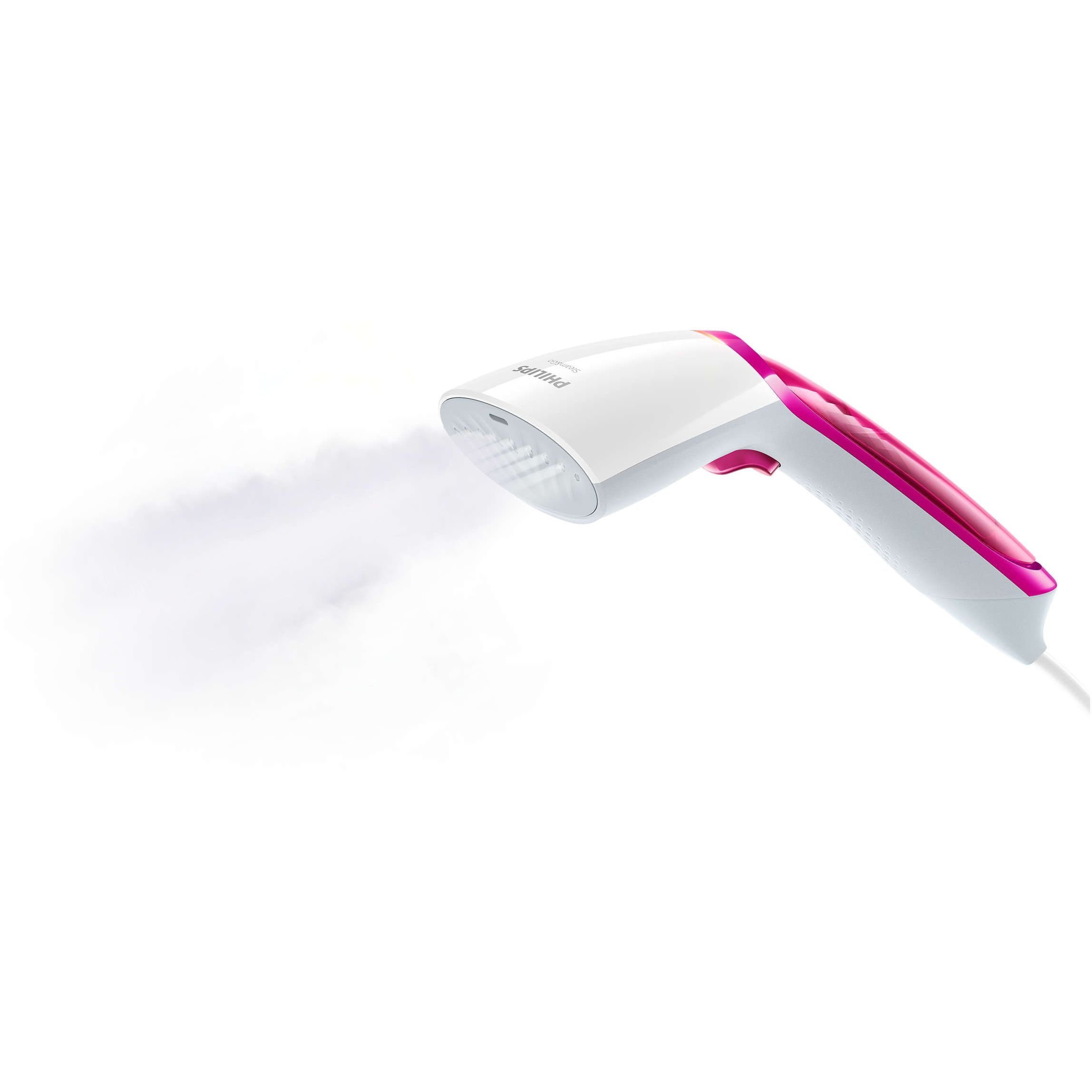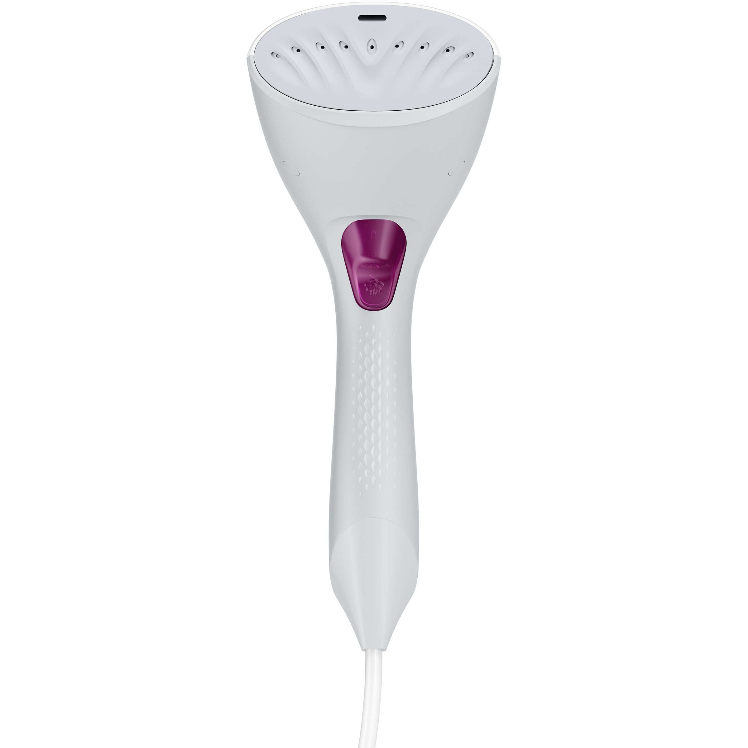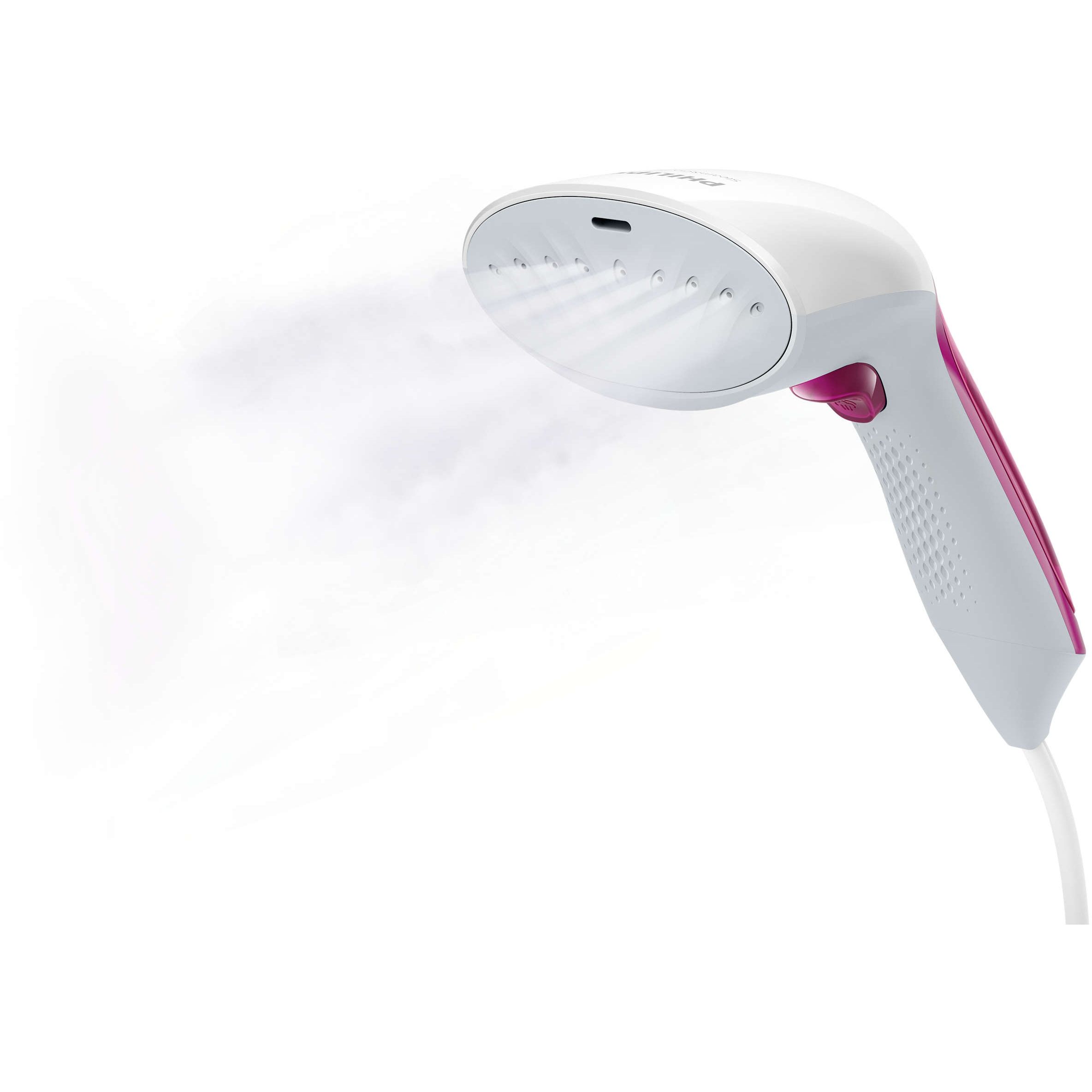 Design compact pentru utilizare comodă, depozitare şi călătorii. Aparatul de călcat vertical cu aburi are un design ergonomic care este uşor, compact şi comod de utilizat. Pur şi simplu apasă butonul declanşator şi priveşte cum cutele dispar.