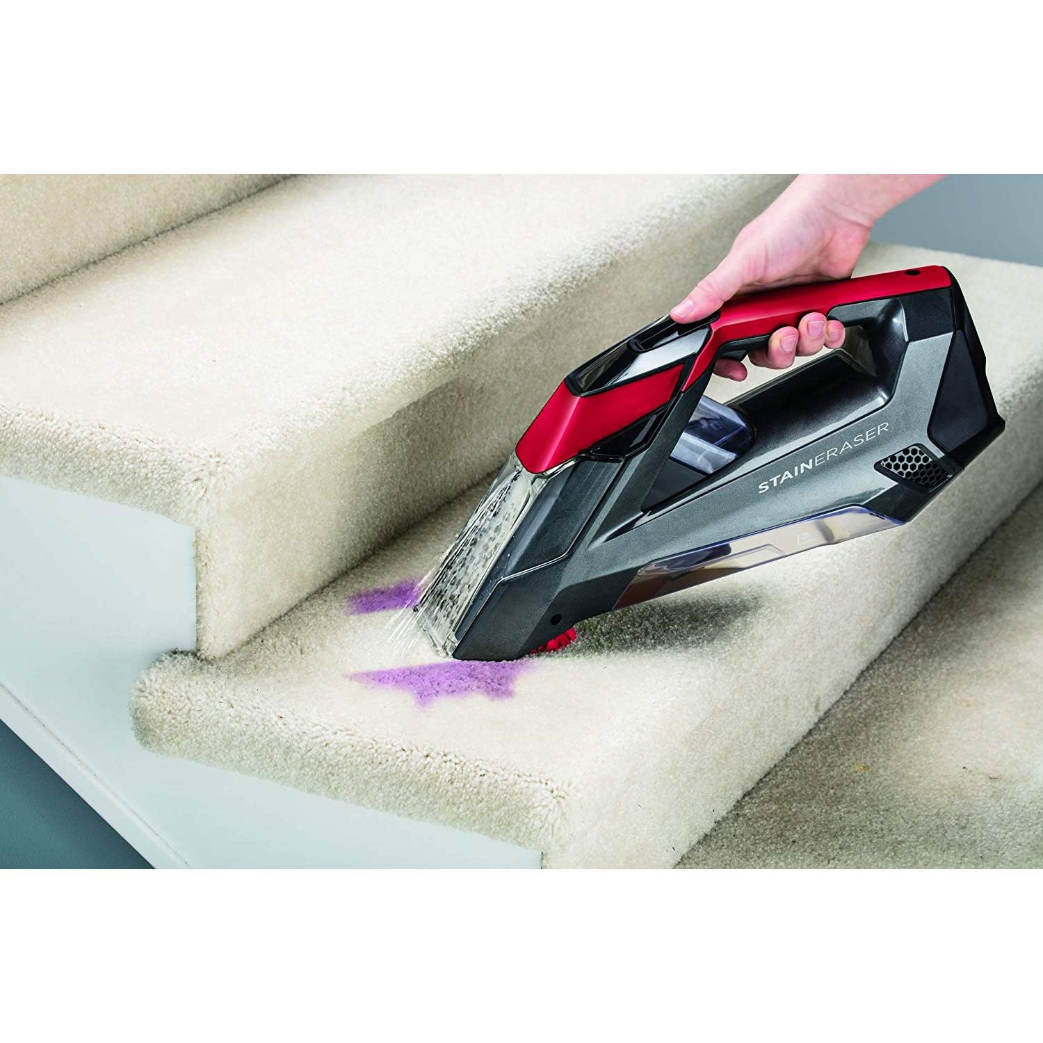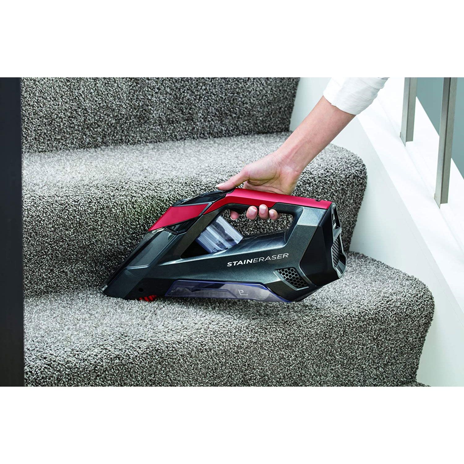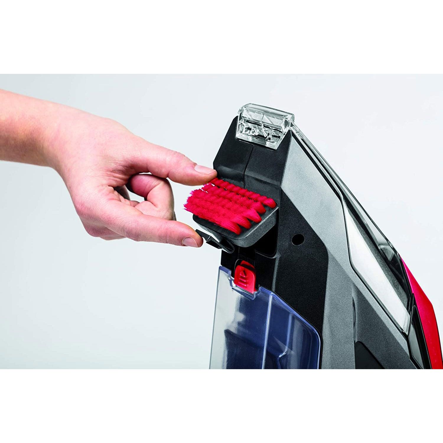 Aparatul este livrat cu o monstră de soluţie de curăţat Spot & Stain şi Oxygen Boost pentru îndepărtarea rapidă a petelor şi mirosurilor din mochete şi tapiserii. Soluţia poate fi depozitată în aparatul de curăţat pentru a fi gata de folosit când ai nevoie. Pur şi simplu pulverizezi detergentul de curăţat, freci cu peria incorporată in aparatul de curăţat şi apoi aspiri murdăria care ajunge în rezervorul cu apă murdară.