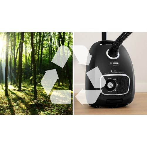 BOSCH este dedicat durabilității, motiv pentru care dispozitivele Bosch sunt dezvoltate pentru a conserva mediul și pentru a economisi resurse. Prin urmare, acest aspirator este fabricat din plastic reciclat în proporție de 32%, iar ambalajul este realizat din hârtie reciclată 95% cu material compostabil și reciclabil în interior. Și, datorită motorului Bosch de lungă durată și de înaltă calitate, fabricat în Germania, vei folosi aspiratorul tău o lungă perioadă de timp.