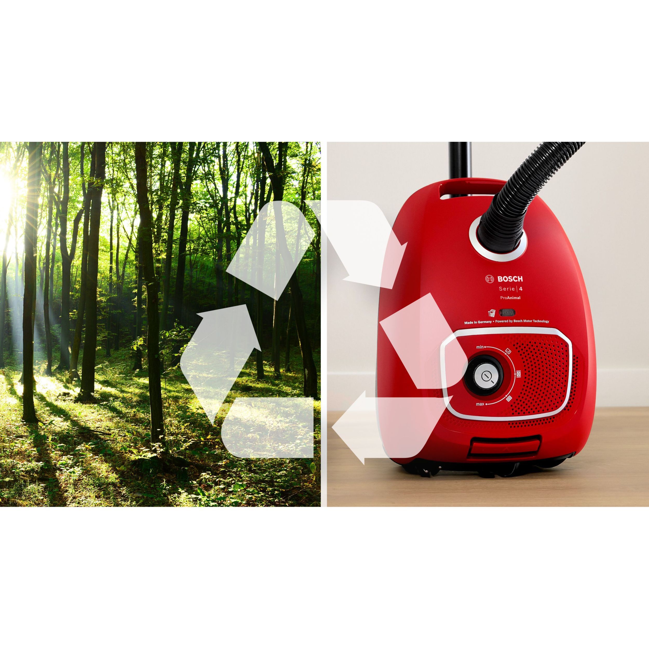 BOSCH este dedicat durabilității, motiv pentru care dispozitivele Bosch sunt dezvoltate pentru a conserva mediul și pentru a economisi resurse. Prin urmare, acest aspirator este fabricat din plastic reciclat în proporție de 32%, iar ambalajul este realizat din hârtie reciclată 95% cu material compostabil și reciclabil în interior. Și, datorită motorului Bosch de lungă durată și de înaltă calitate, fabricat în Germania, vei folosi aspiratorul tău o lungă perioadă de timp.