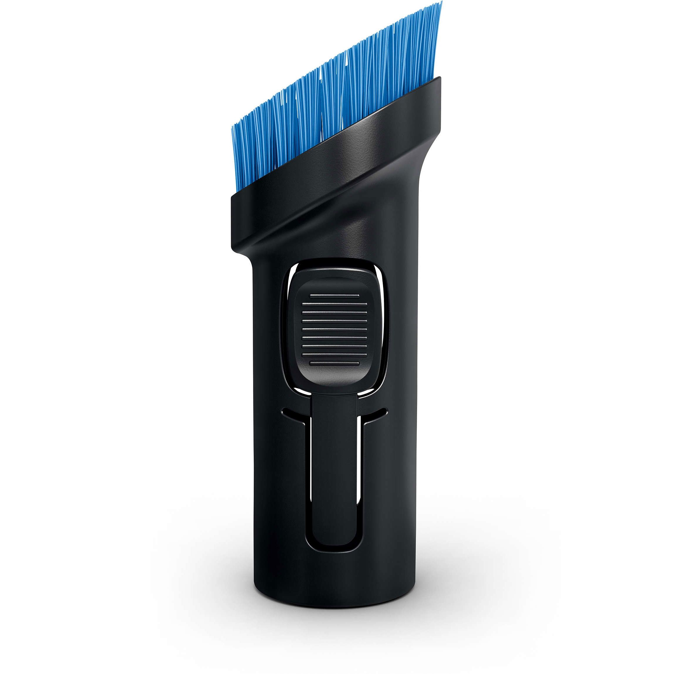 Accesorii integrate pentru confort maxim. Aspiratorul este conceput cu accesorii integrate, astfel încât nu este nevoie să transporţi piese suplimentare atunci când cureţi. Accesoriul pentru spaţii înguste este poziţionat pe rezervor, întotdeauna gata de utilizare.