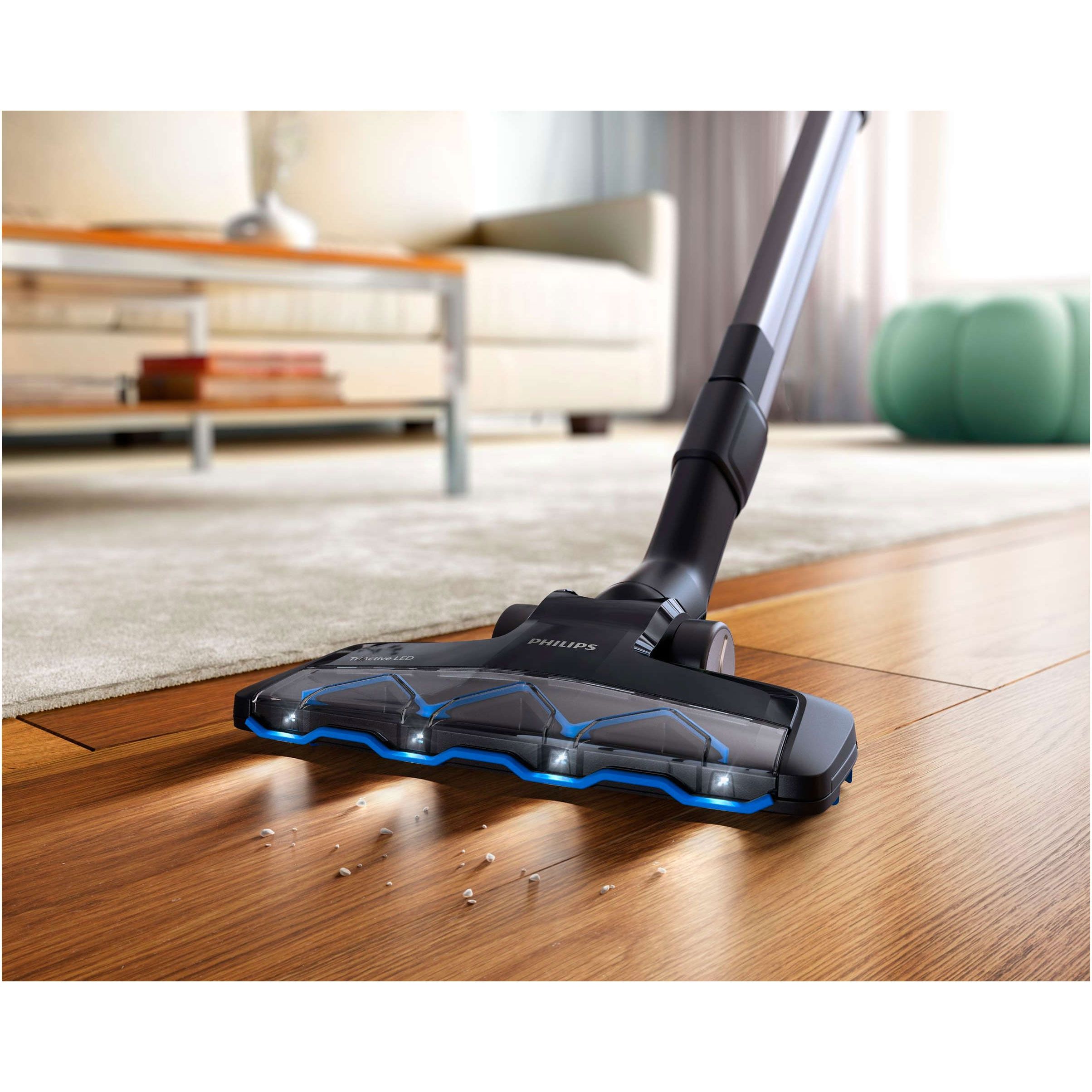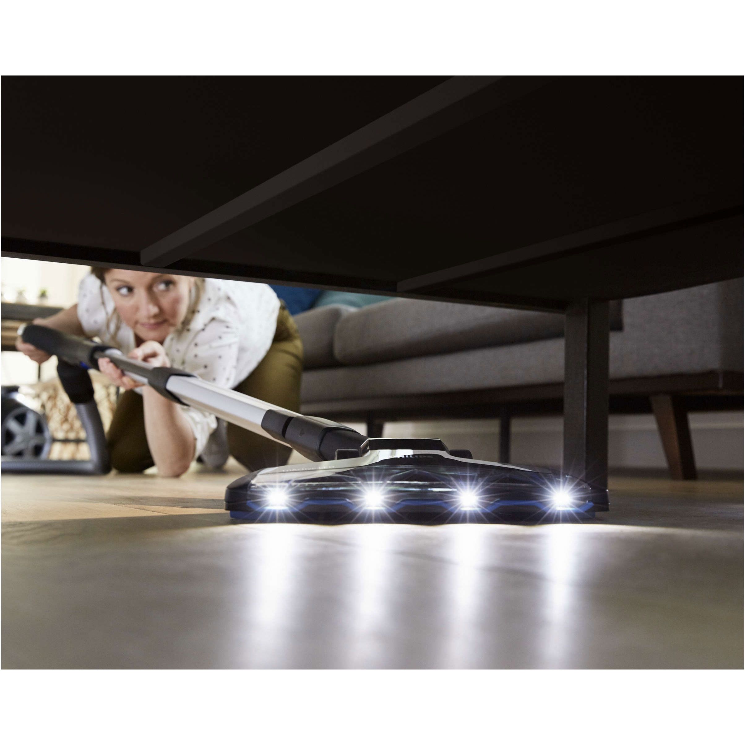 TriActive LED pentru rezultate de curăţare în profunzime. Noul cap de aspirare TriActive LED evidenţiază praful ascuns datorită tehnologiei exclusive a lămpii de podea. Mulţumită structurii unice din cauciuc a clapelor, capul de aspirare fără perii nu răsuceşte părul. Datorită formei plane, asigură o funcţionalitate orizontală, care te ajută să ajungi în şi mai multe zone.