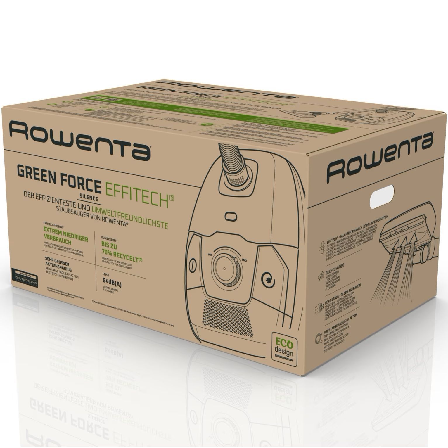 Aspirator cu sac ROWENTA Green Force Effitech Total Clean RO6189EA, 400W, 3 niveluri de filtrare, Cablu 8.4m, Praf 4.5L, Perie EasyBrush, Indicator umplere sac, Negru