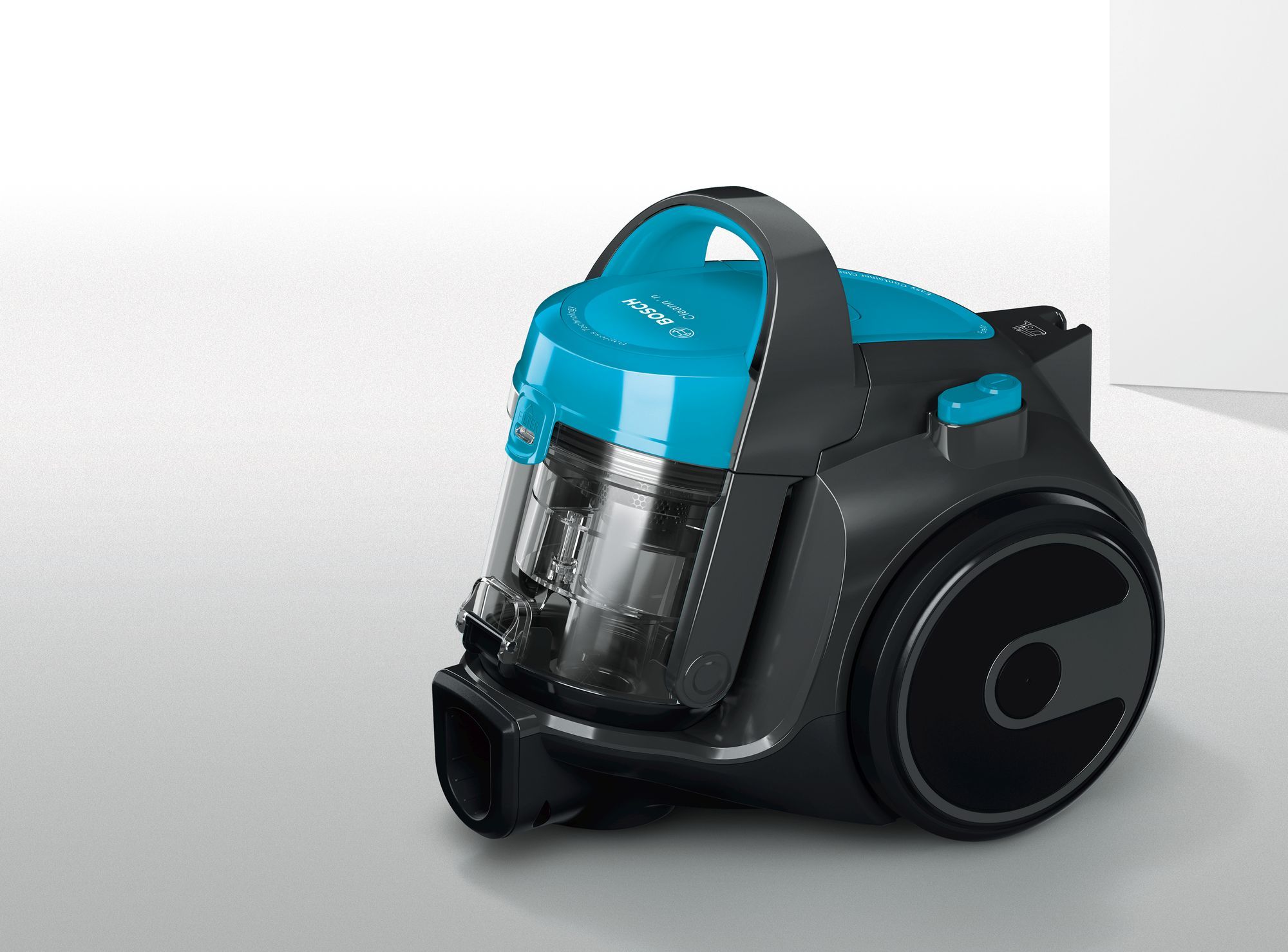 Aspirator fără sac BOSCH Serie 2 BGS05A221, 700W, 1.5l, Motor inovator HiSpin, Filtru igienic PureAir, Perie cu role multifuncțională, Ultra-compact, Derulator automat cablu, Stone Grey/Turquoise
