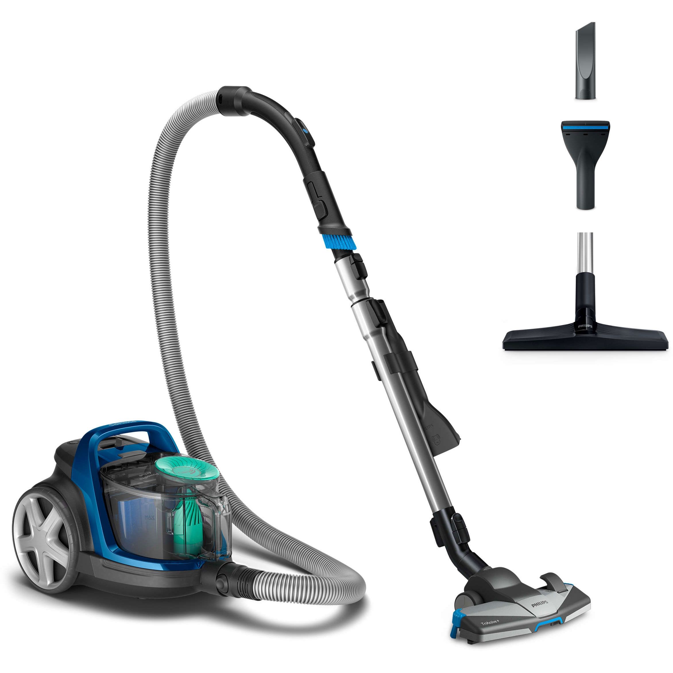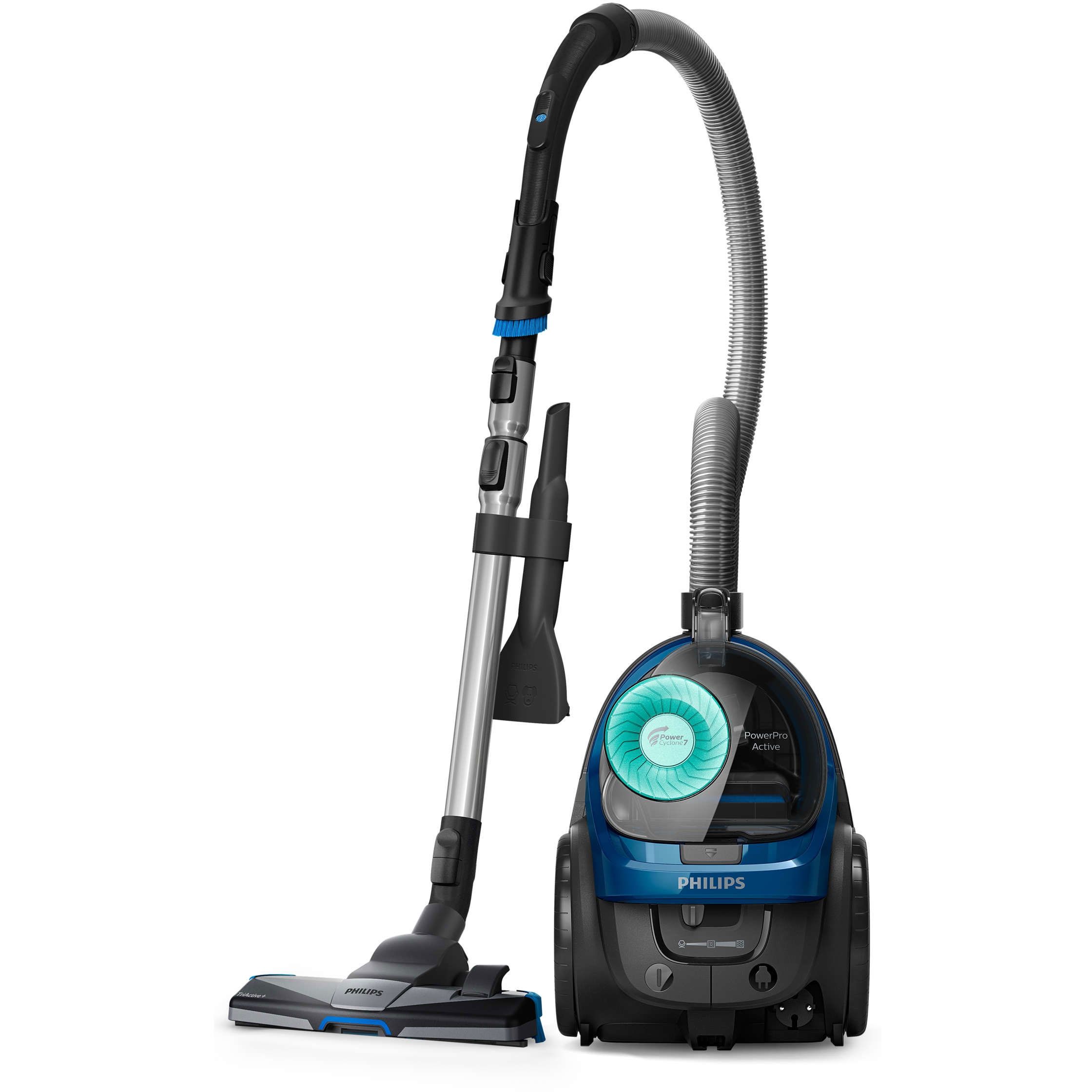 Aspirator fără sac Philips PowerPro Active 5000 FC9552/09, Asp uscată, 899W, Praf 1.5l, Cablu 7m, 71-77dBA, Filtru Allergy H13, PowerCyclone 7, ActiveLock, TriActive, Roți cauciuc, Mâner, 4.5kg, Dark Royal Blue