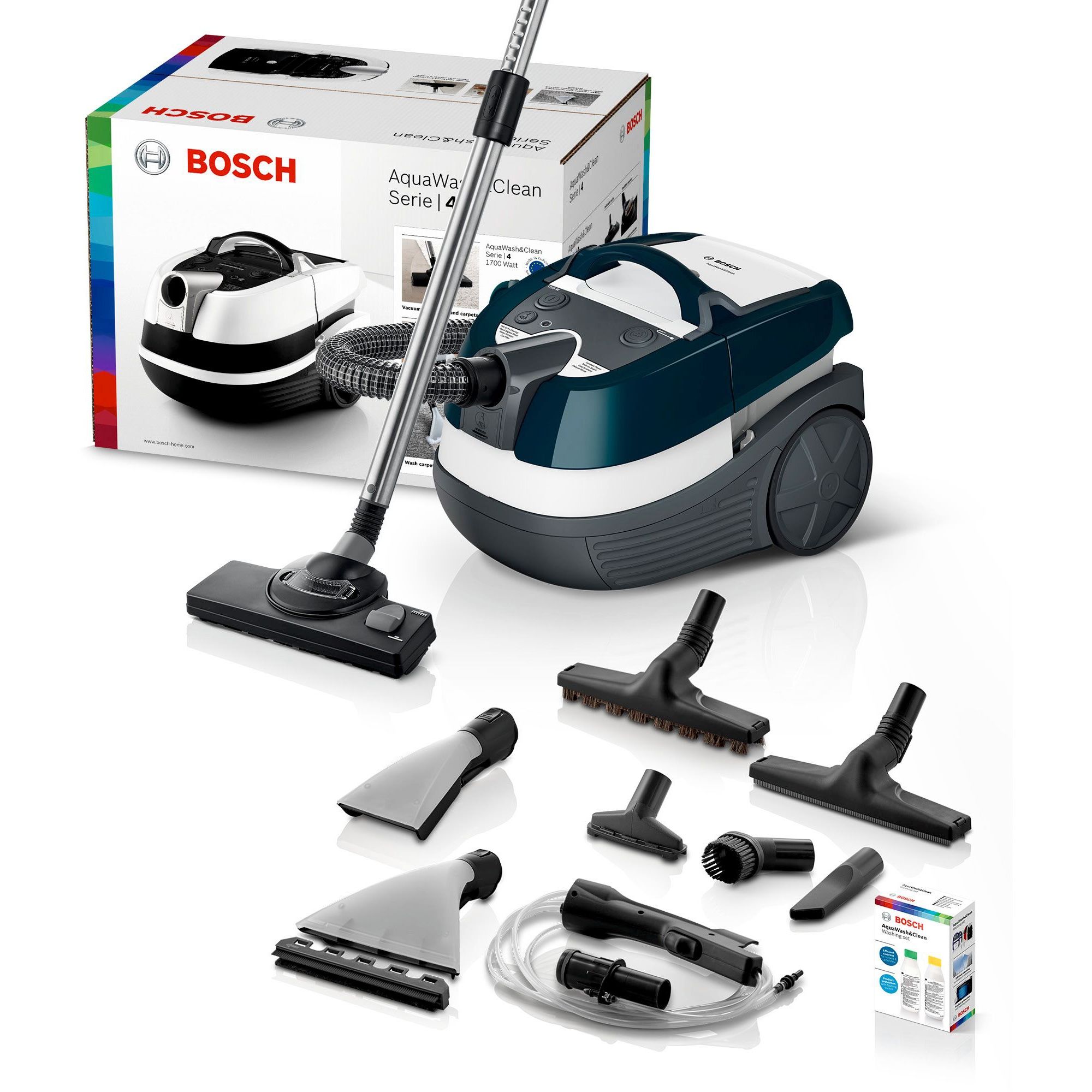 AquaWash&Clean - primul aspirator wet&dry 3în1 de la Bosch cu motor de 1.700 W - spală covoarele, aspiră lichide, aspiră toate tipurile de pardoseli