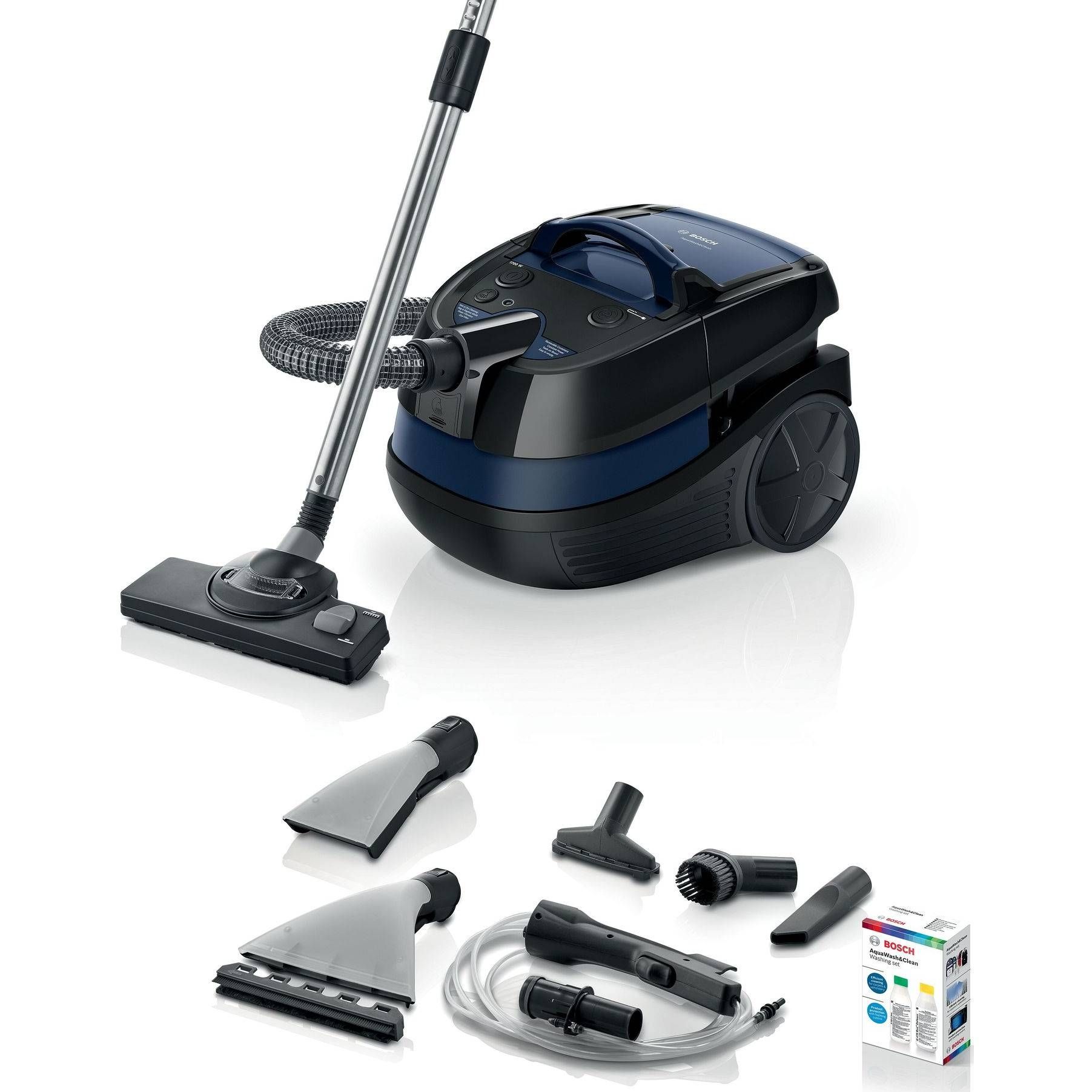 De obicei ai nevoie de aparate diferite atunci când aspiri umed și uscat. Aspiratorul AquaWash & Clean include o gamă de accesorii special concepute pentru curățarea umedă și uscată. Acum poți spăla covoarele și tapițeria, poți aspira lichide și poți curăța parchetul și covoarele folosind un singur aspirator.