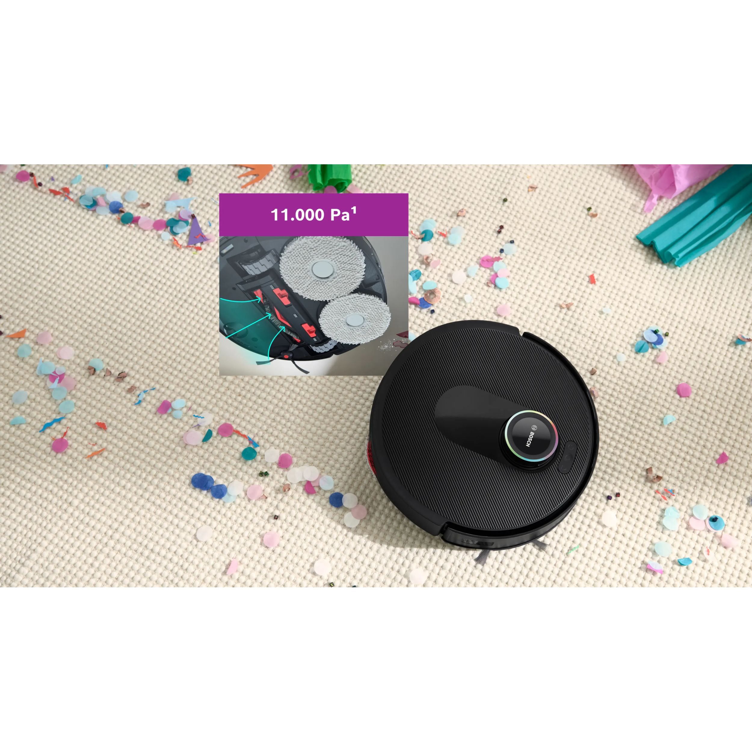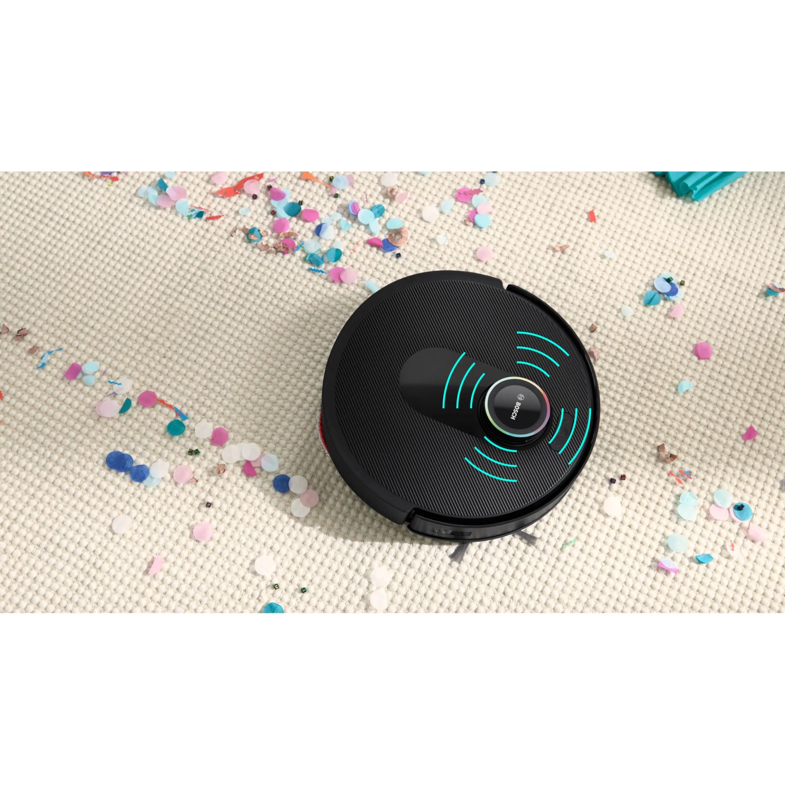 Aspirator robot BOSCH Spotless Max Cam BCRDW3BX, Apă 55ml, Rezervor 0.3l, Perie Carbon Power, Funcție Reduced Tangling, Navigare ușoară, Negru