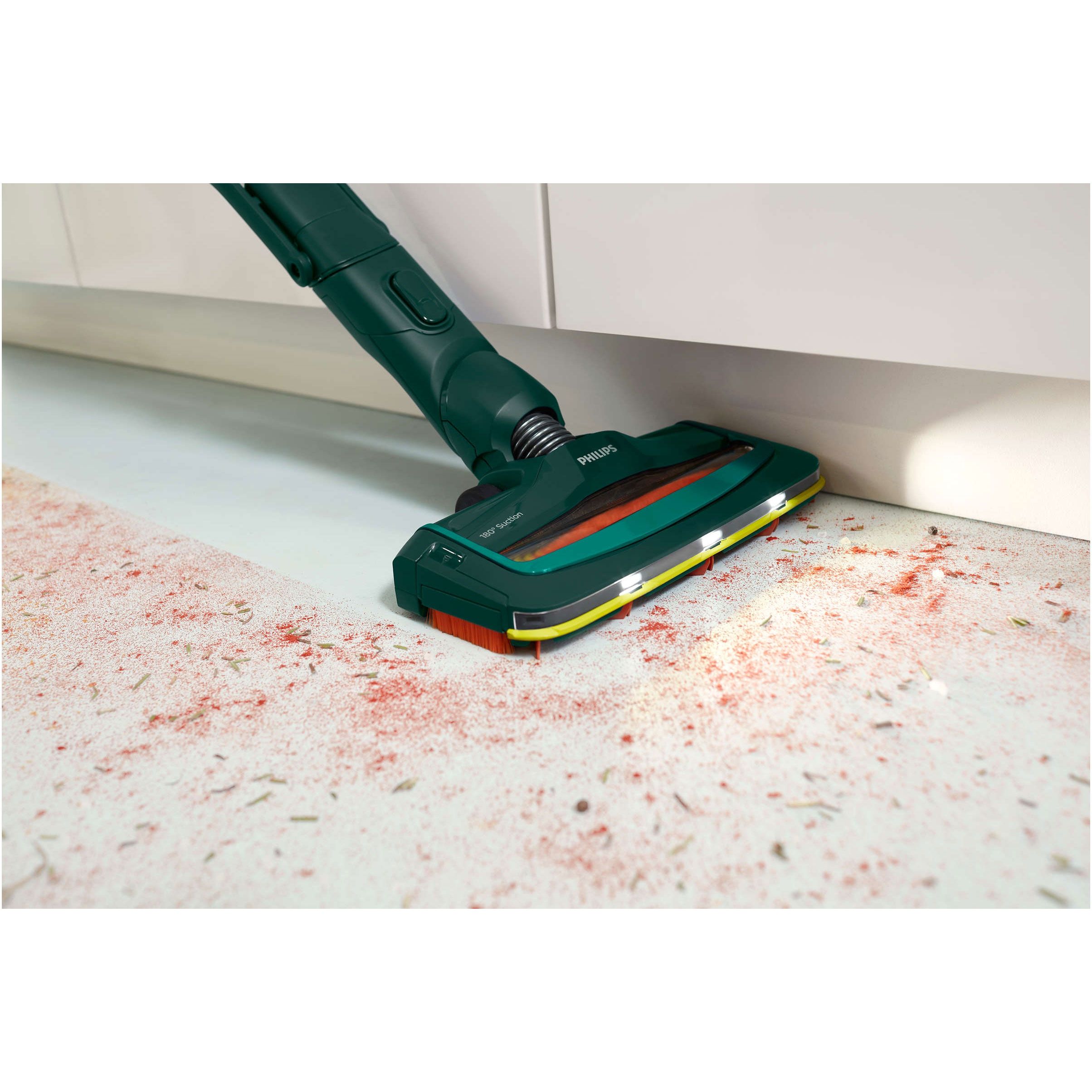Cap de aspirare la 180° pentru aspirarea puternică şi precisă a murdăriei. Capul de aspirare la 180° este proiectat pentru aspirarea puternică şi precisă a prafului şi a murdăriei de pe toate tipurile de pardoseli, chiar şi în locurile greu accesibile.