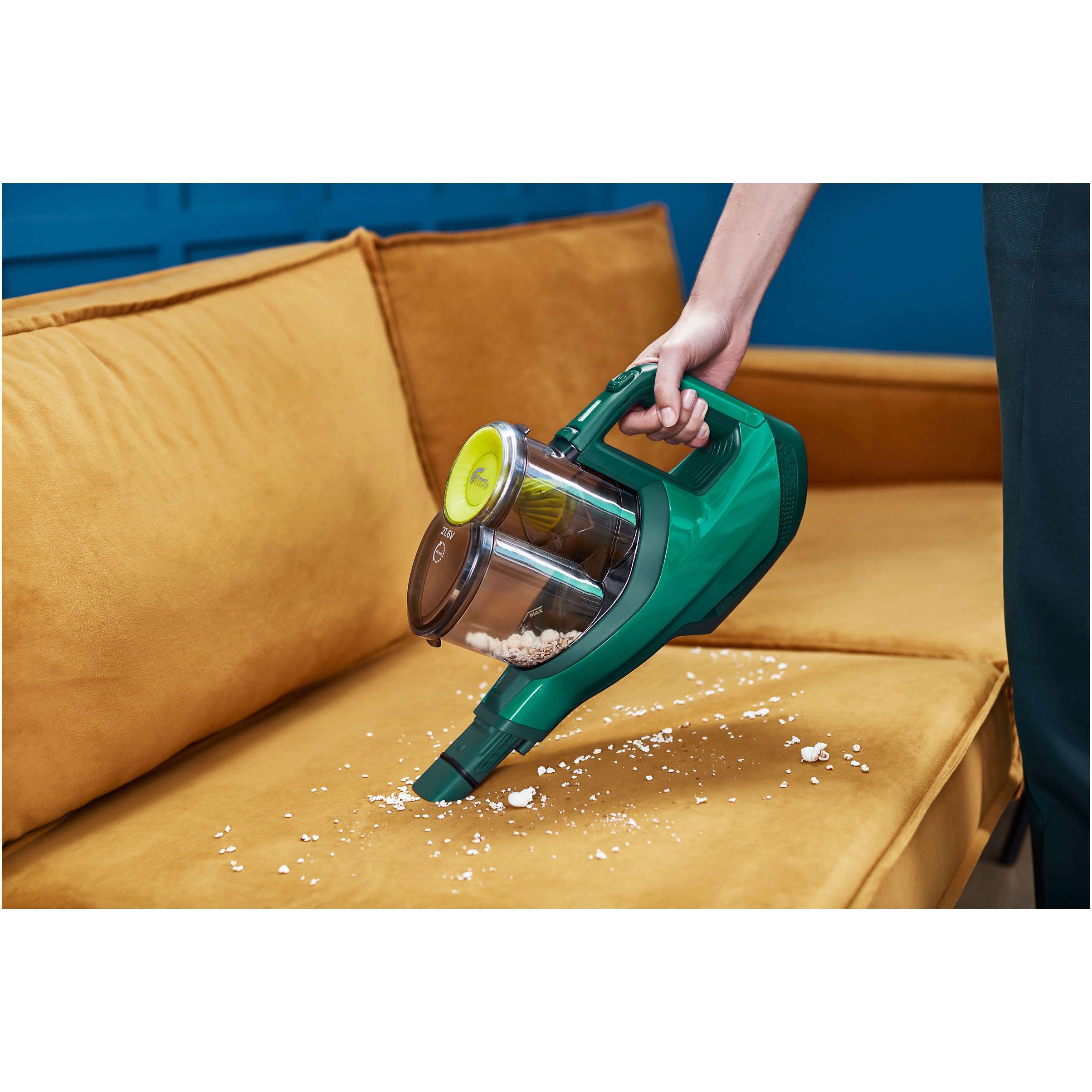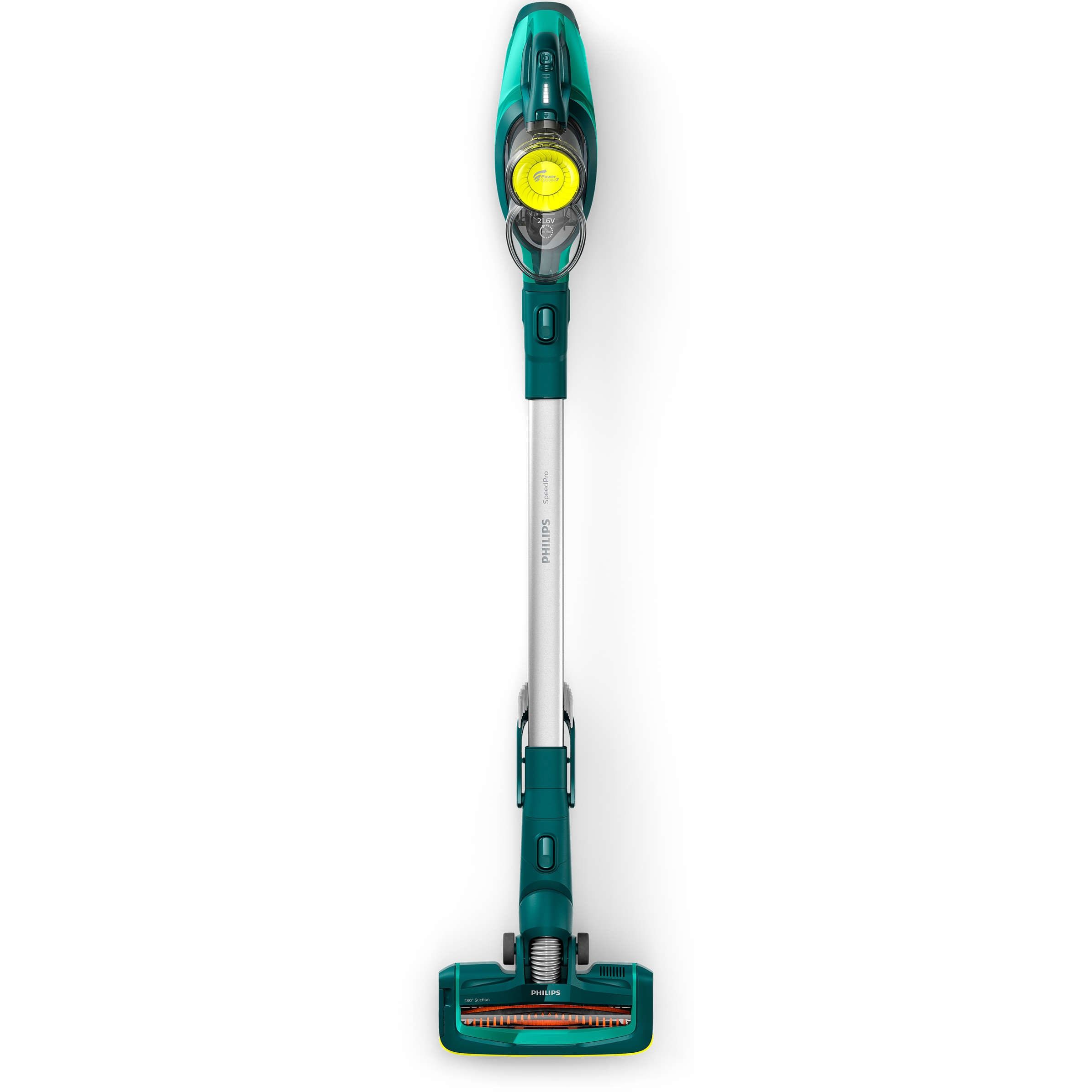 Până la 40 min. de putere de curăţare cu baterii Li-ion de 21,6 V. Bateriile litiu-ion de 21,6 V de înaltă performanţă oferă până la 40 de minute de funcţionare în modul normal şi 20 de minute în modul Turbo înainte de a trebui reîncărcate.