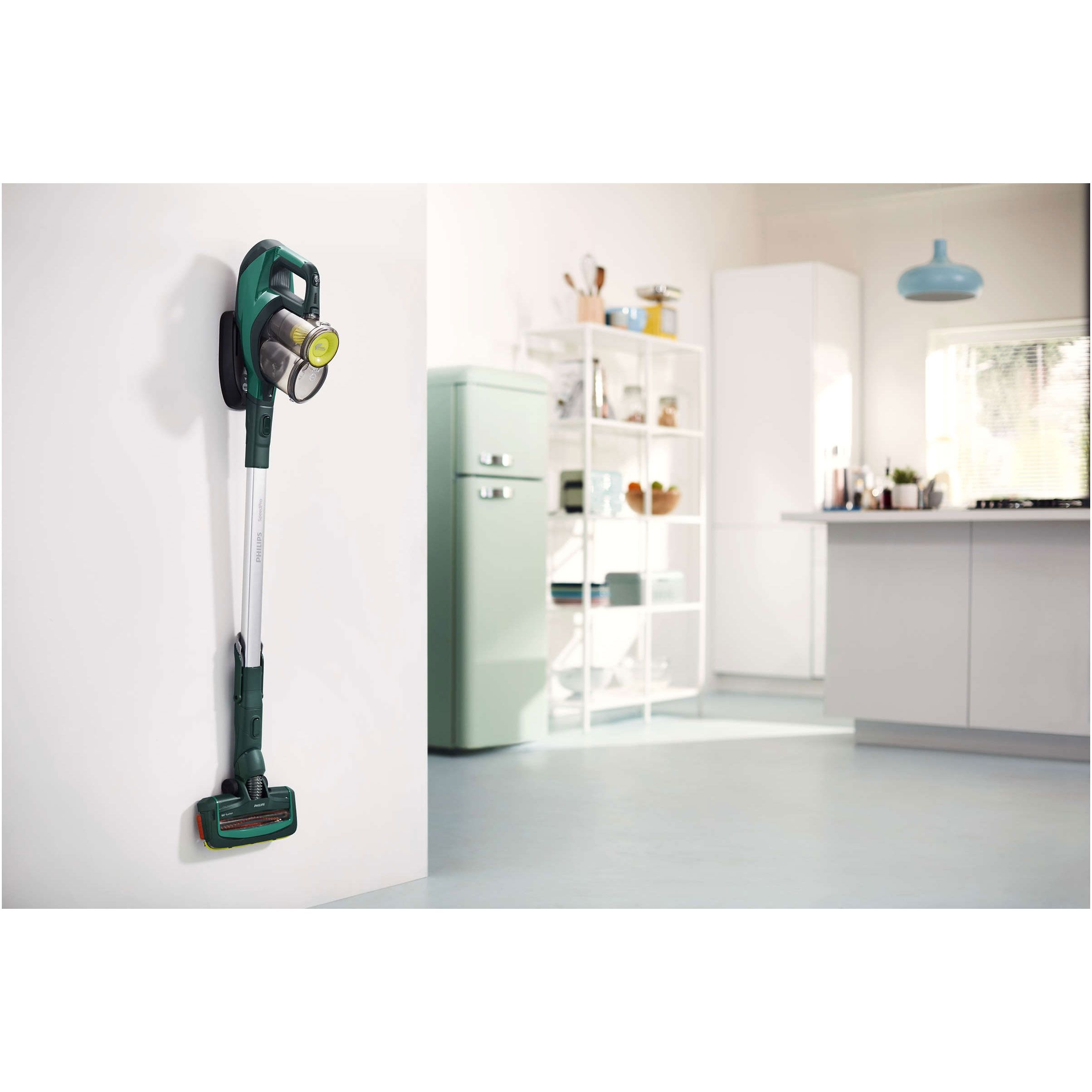 Aspirator vertical 2în1 Philips SpeedPro FC6725/01, Uz Dry, 2 trepte, Li-Ion 21.6V (uz STD 40min,reînc. 5h), Praf 0.4l, Filtru lavabil, 80dB, Motor PowerBlade, PowerCyclone 7, LED-uri integrate, 2.48kg, Olive Green
