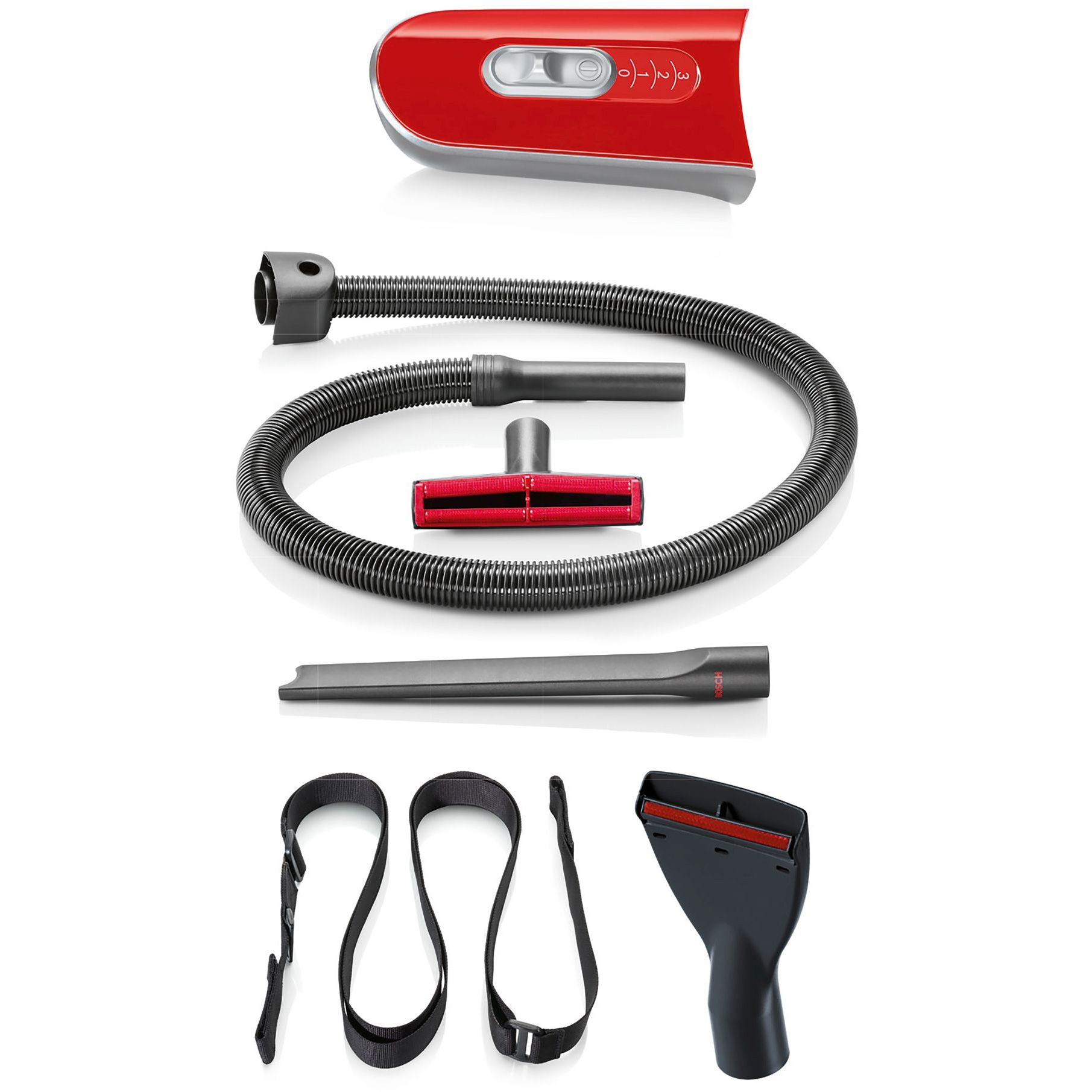 Setul de accesorii ProAnimal include un mâner scurt suplimentar, un furtun şi curea de umăr, duză pentru tapiţerie, rosturi şi curăţarea scaunelor din maşină;