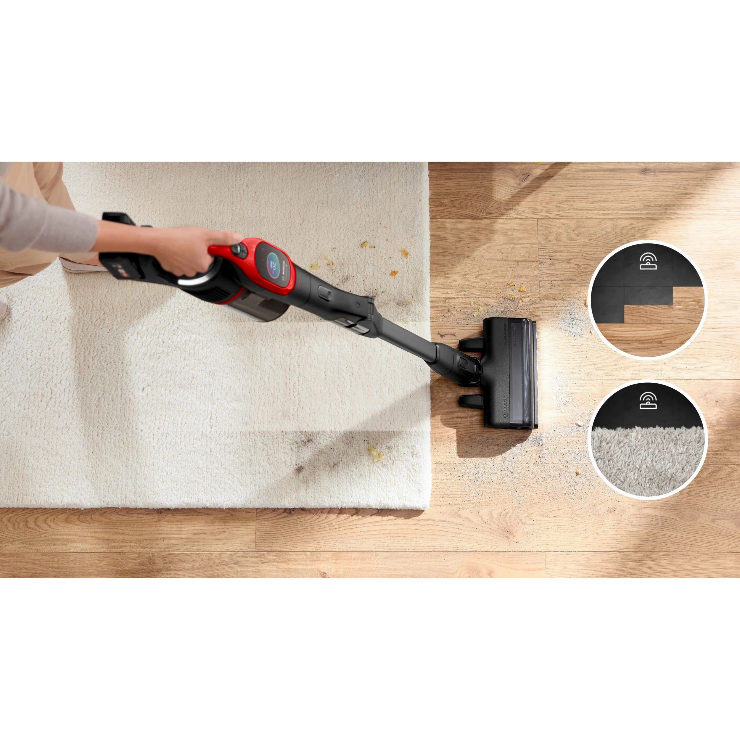 - Peria MicroClean: Experimentează cel mai bun sistem BOSCH de aspirare a prafului de peste 99,9%*, cu aceasta perie eliminându-se chiar și particulele microscopice;