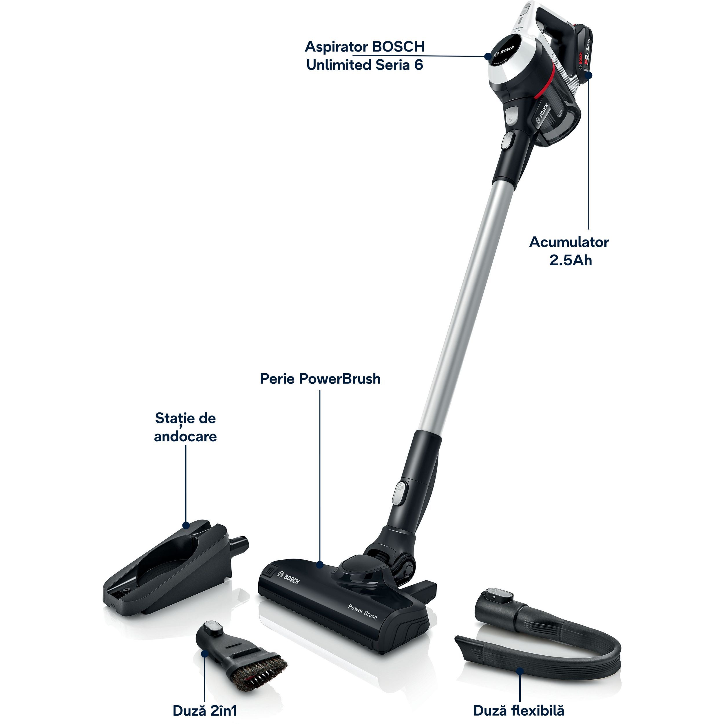 Depozitare facilă: stație de andocare pentru depozitarea ușoară a aspiratorului și a accesoriilor.