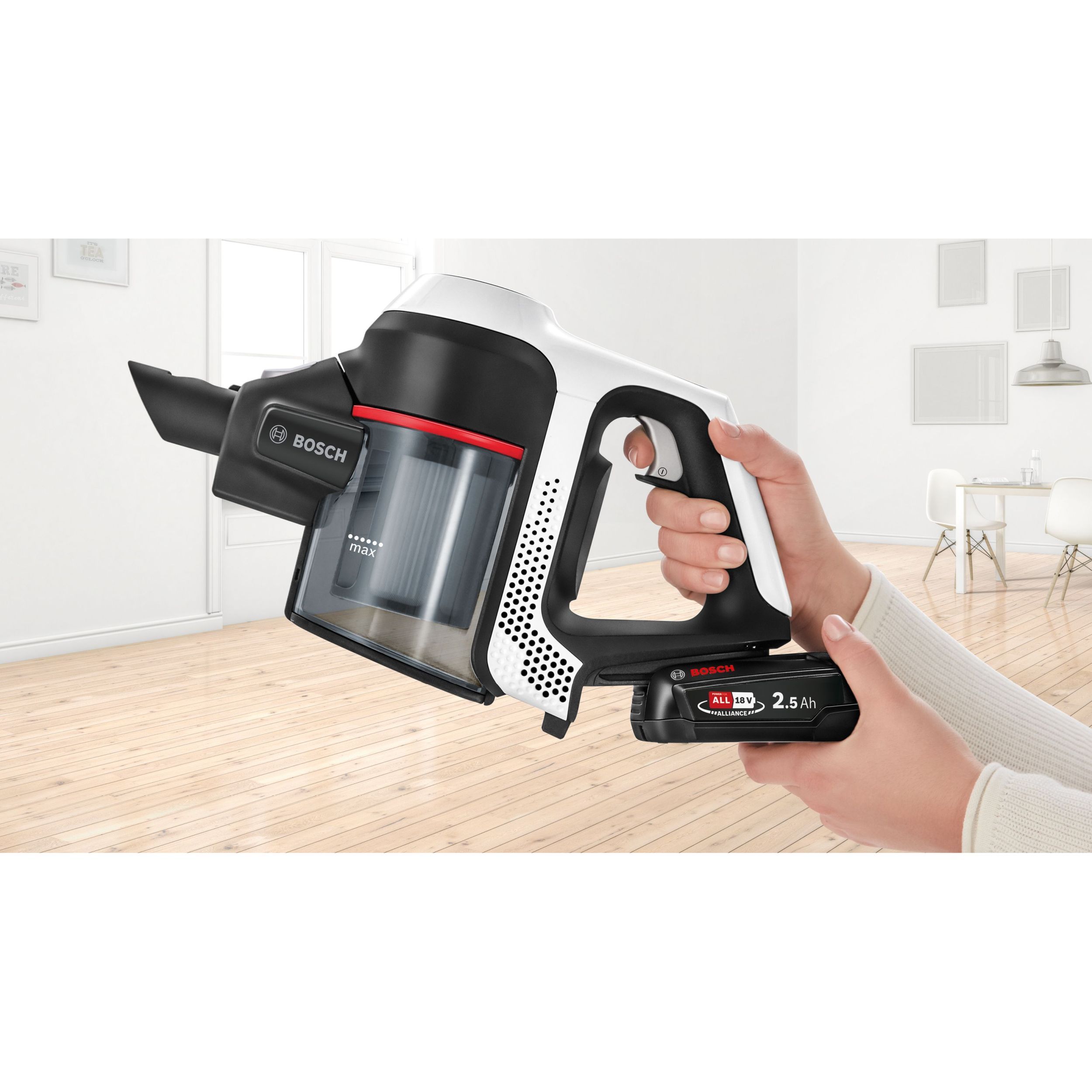 Vrei să cureți toată casa fără ca aspiratorul să rămână fără energie? Dacă dorești flexibilitate mai mare în privința duratei de funcționare, un acumulator suplimentar (accesoriu opțional) îți permite să prelungești perioada de aspirare.