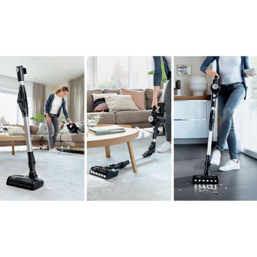 Datorită sistemului de detectare automată a bateriei, patentat de Bosch, aspiratorul recunoaște tipul de baterie utilizat și optimizează fie performanța pentru a îndepărta murdăria dificilă, fie durata de funcționare pentru a acoperi suprafete mari.