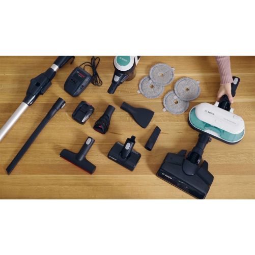 Datorită sistemului de detectare automată a bateriei, patentat de Bosch, aspiratorul recunoaște tipul de baterie utilizat și optimizează fie performanța pentru a îndepărta murdăria dificilă, fie durata de funcționare pentru a acoperi suprafete mari.