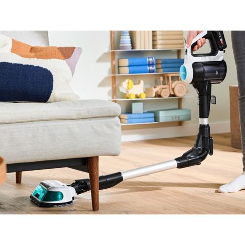 Economisești timp și energie datorită funcției Quick Stand. Treci fără efort de la curățarea podelei la curățarea diferitelor suprafețe folosind aspiratorul de mână. Quick Stand este opțiunea prin care tija și peria de aspirare sunt menținute în poziție verticală, fără niciun suport, în timp ce folosești aspiratorul de mână pentru a curăța diverse suprafețe. Nu este necesar să pui aspiratorul pe podea sau să îl depozitezi în stația de andocare. După ce ai terminat, pur și simplu atașează aspiratorul de mână pe tija metalică și continuă să aspiri podeaua.