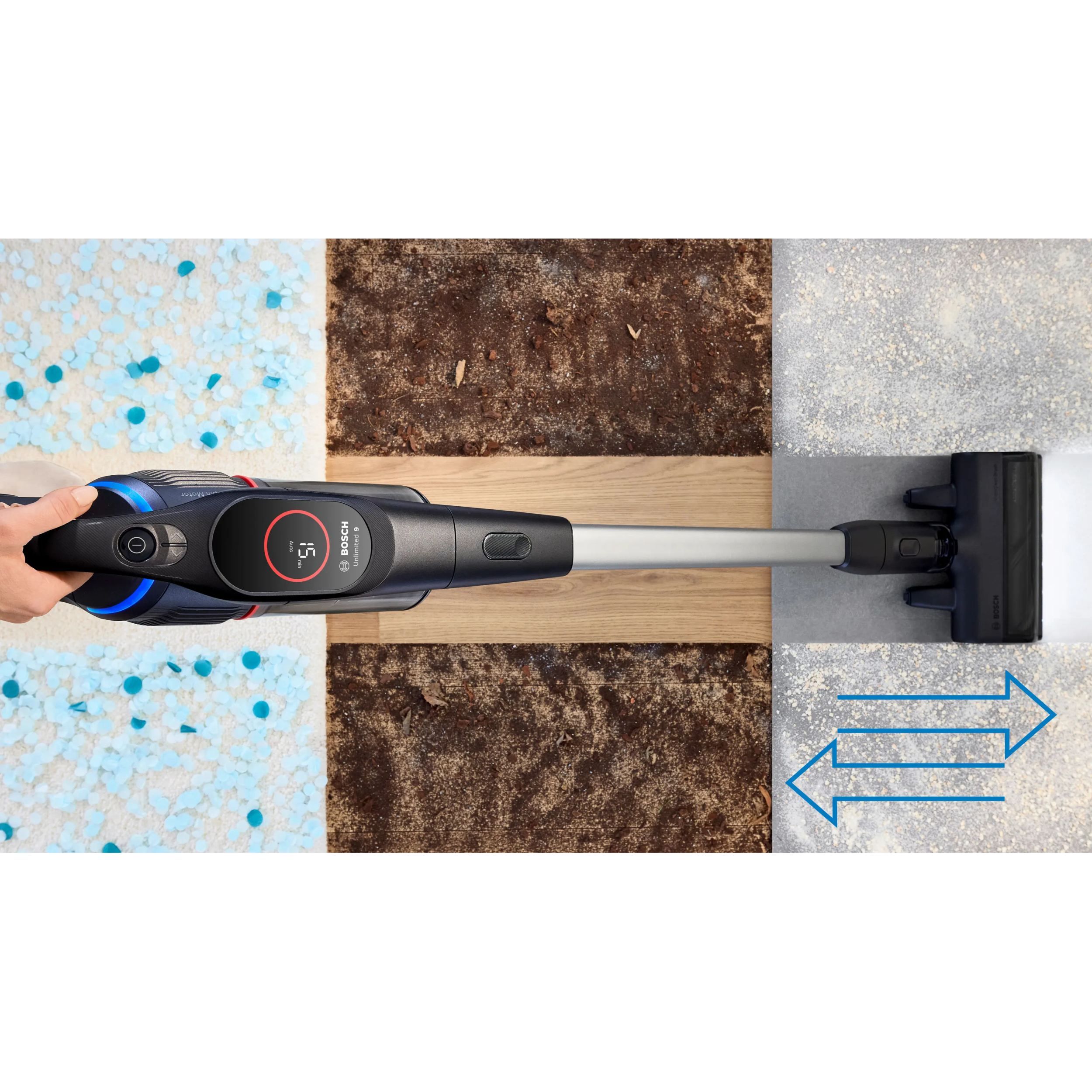 Unlimited 9 este echipat cu un display practic cu LED care afișează timpul de funcționare rămas și 3 moduri de putere pentru fiecare provocare. "Turbo" mărește performanța pentru sarcini dificile. Modul inteligent "Auto" ajustează performanța și durata de funcționare în funcție de podea și suprafață - indiferent dacă este covor sau podea tare și „Eco” oferă o durată de funcționare optimă, de lungă durată, pentru sarcinile de curățare de zi cu zi.
