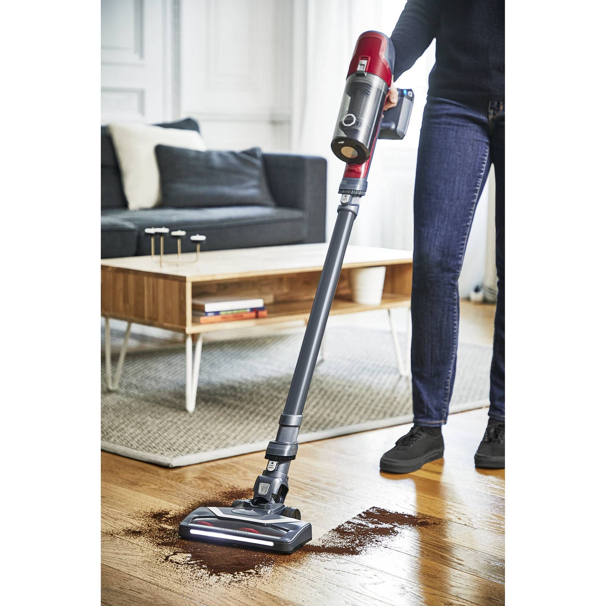 Obține o locuință curată într-un timp scurt: cap de aspirare cu perie motorizată de înaltă performanță și iluminare LED, 2 trepte automate de putere și funcție BOOST, baterie detașabilă cu o autonomie de până la 45 de minute*.