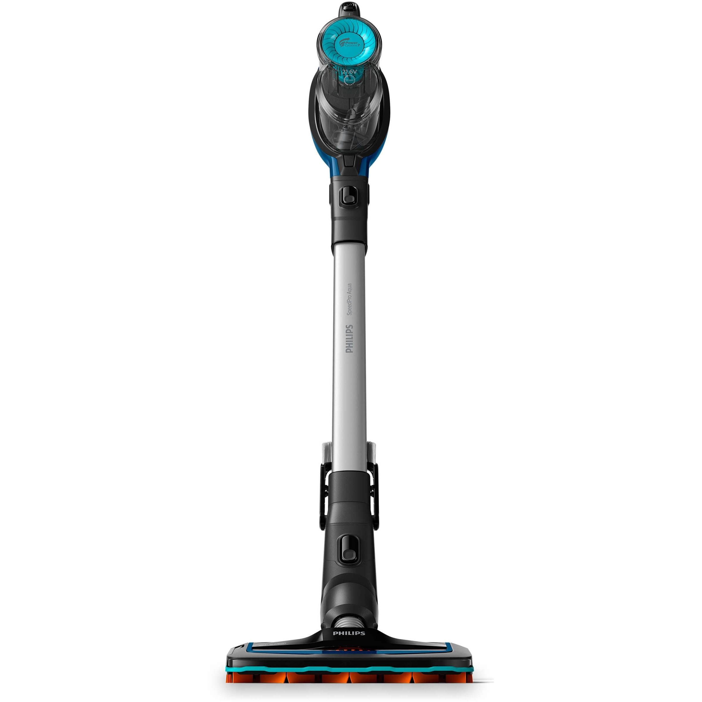 Unitate portabilă, accesoriu pentru spaţii înguste şi perie integrate. Accesoriile sunt simplu de utilizat cu un singur clic. Cu unitatea portabilă detaşabilă, SpeedPro se comportă ca două dispozitive într-unul singur. Accesoriul cu perie este integrat în tub, pentru a fi întotdeauna la îndemână pentru curăţarea tavanelor şi a rafturilor.