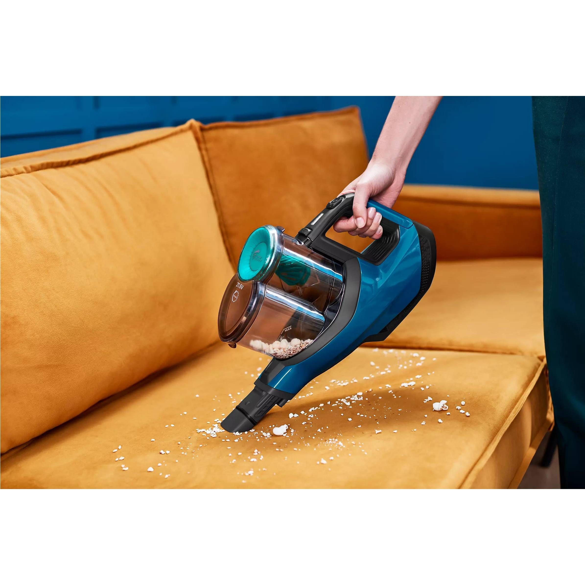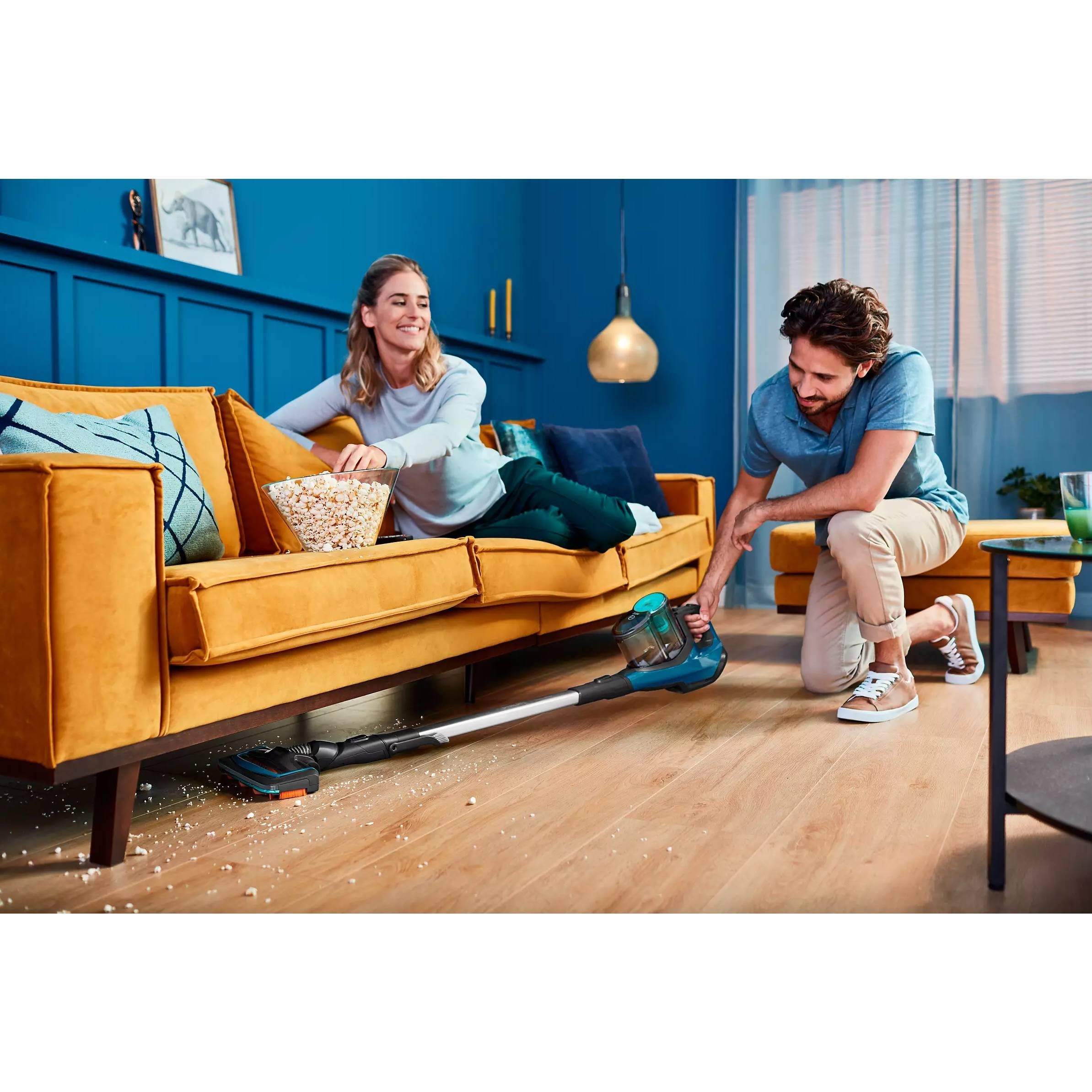 Până la 50 min. de putere de curăţare cu baterii Li-ion de 21,6 V. Bateriile litiu-ion de 21,6 V de înaltă performanţă oferă până la 50 de minute de funcţionare în modul normal şi 22 de minute în modul Turbo înainte de a trebui reîncărcate.