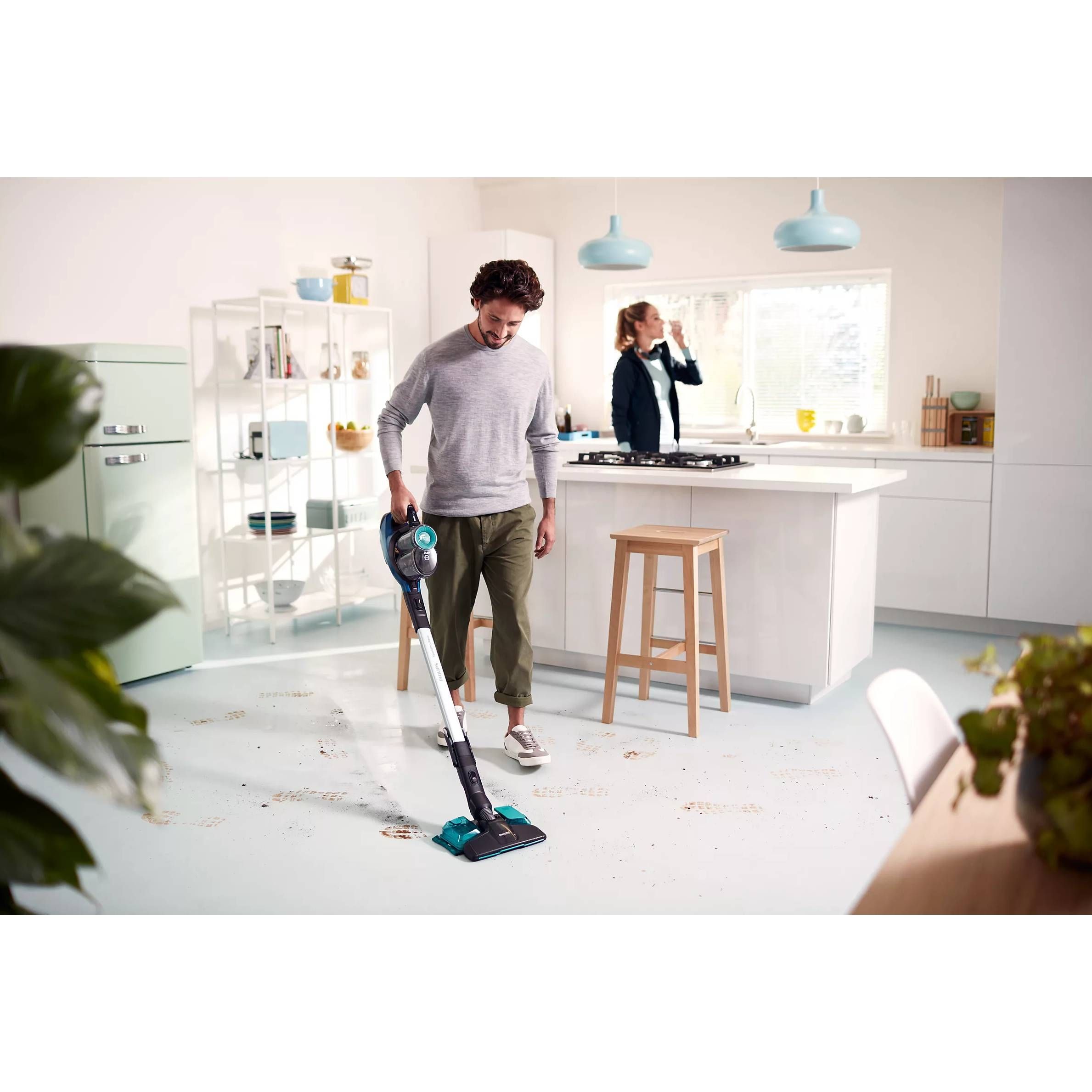 Aspirator, mop şi aspirator portabil, eliminând până la 99 % din bacterii. Sistemul unic de aspirare şi ştergere ajută la îndepărtarea a până la 99 % din bacterii la o singură trecere. Eliberarea controlată a apei menţine un nivel optim de umiditate pentru toate suprafeţele dure în timpul curăţeniei. Bureţii din microfibră pot fi spălaţi de mână sau în maşina de spălat.