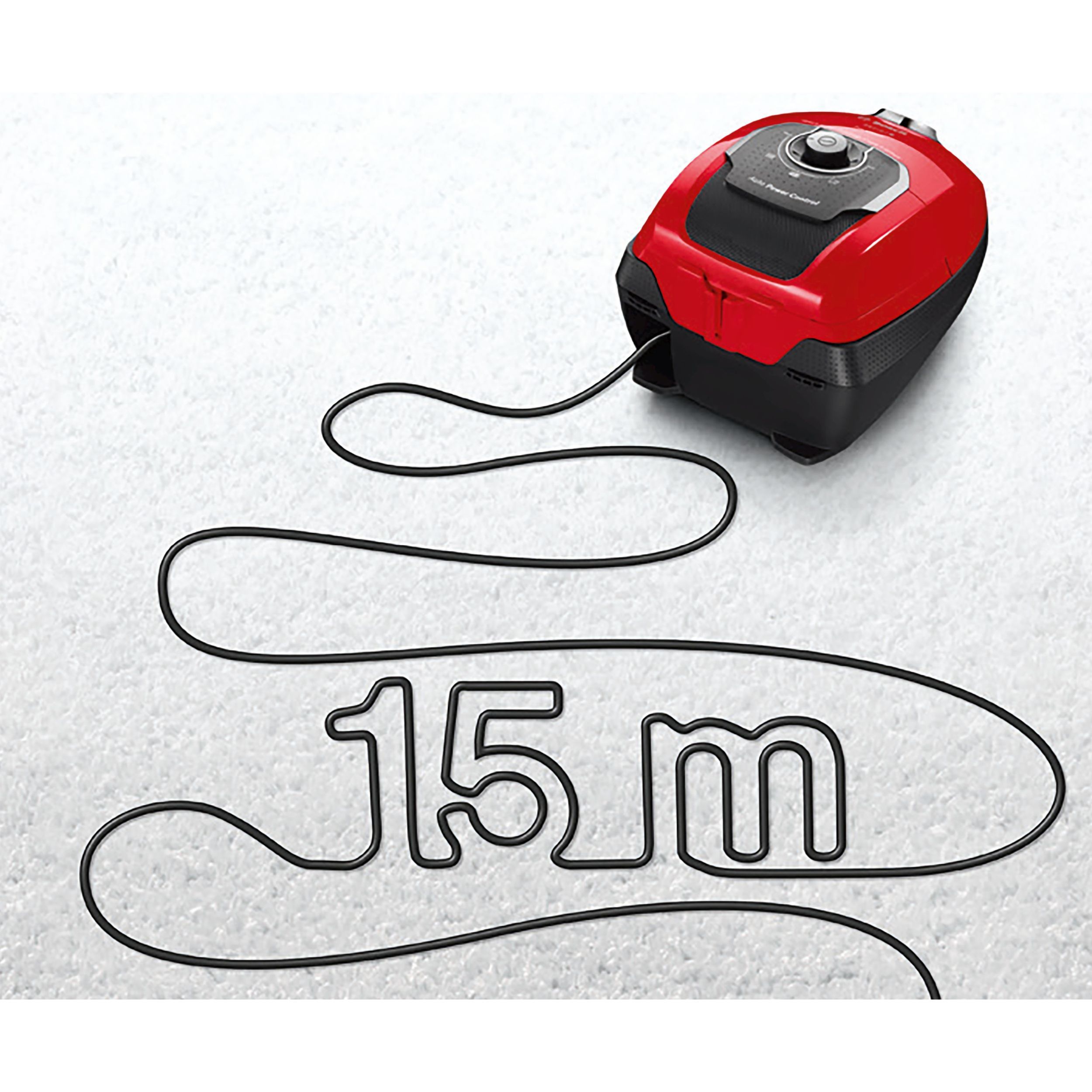 Bucură-te de confort în curățare cu raza extinsă de operare de 15 m a aspiratorului nostru. Cablul foarte lung îți permite să cureți fără efort colțurile și spații mai mari, minimizând necesitatea de a schimba constant prizele.