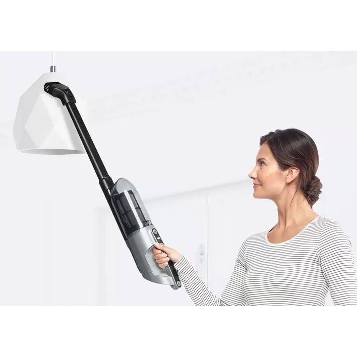 Nu mai pierde timp căutând accesoriile! Sunt integrate în dispozitiv. Duza flexibilă pentru locuri înguste se extinde astfel incât poți să aspiri în locurile greu accesibile precum colțurile sau tavanele înalte. Combinația de duze pentru mobilă și pentru tapițerie face curățarea suprafețelor speciale mult mai confortabilă.
