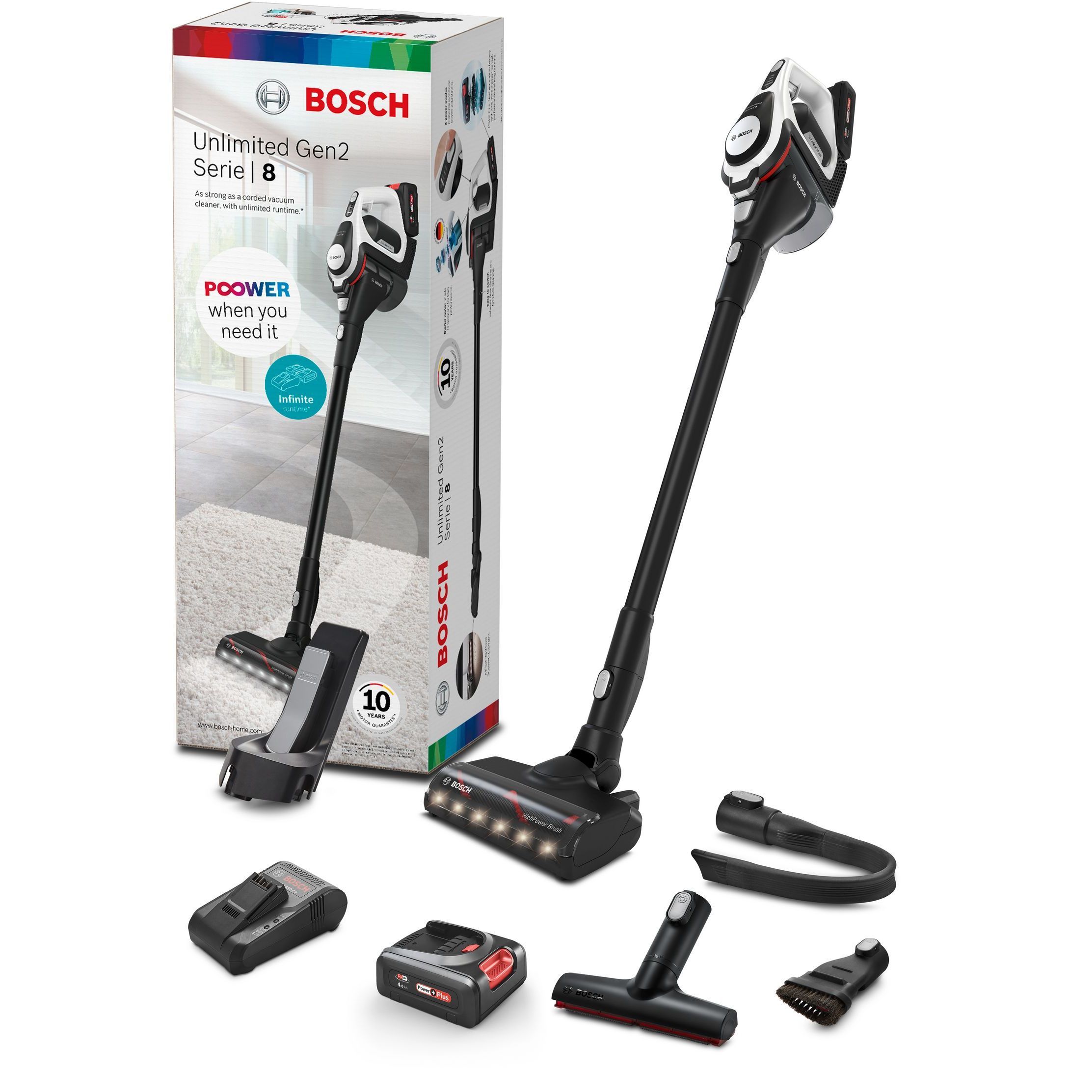 Cu aspiratorul vertical Unlimited Gen2 Serie | 8 ai acceași perfomanță de curățare precum cea obținută de un aspirator cu cablu*. Datorită bateriei îmbunătățite, a motorului puternic și a periei motorizate, acest aspirator multifuncțional asigură rezultate excelente de curățare, indiferent de tipul suprafeței.