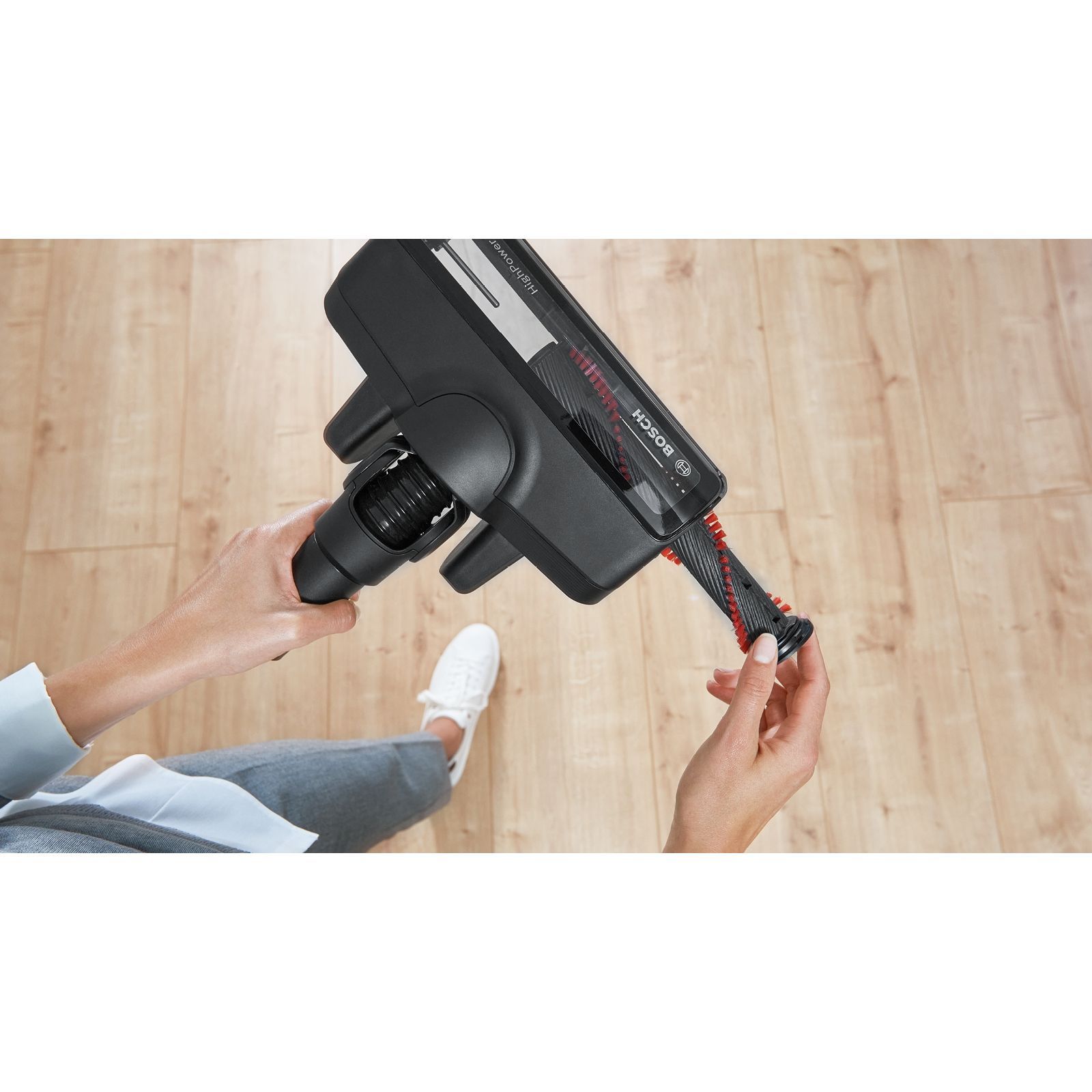 Din când în când trebuie să cureți peria tip rolă, dar acest lucru nu îți va lua mult timp. Peria tip rolă poate fi îndepărtată rapid, iar părul stâns pe perie este ușor de curățat astfel încât să revii rapid la perfomanță maximă de curățare.