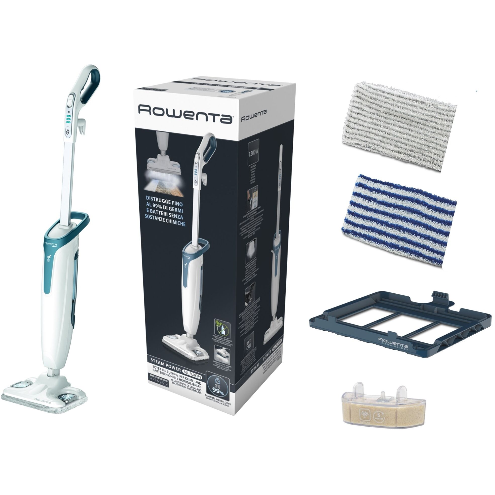 Steam Power de la ROWENTA este soluția perfectă pentru curățarea  podelelor, igienizând într-un mod sănătos cu ajutorul puterii aburului, fără să fie nevoie să utilizezi detergent sau alți agenți chimici. Experimentează sesiuni de curățare în profunzime ce elimină până la 99% din germeni și bacterii.