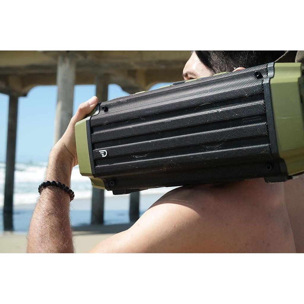 Probabil cea mai puternică boxă wireless portabilă fabricată vreodată. Modelul nostru de top nu are rival în categoria sa, sunetul impecabil şi puterea deosebită fac din Tremor alegerea ideală pentru cei care doresc să impresioneze publicul şi să dea startul petrecerii perfecte. Este destinată audiţiei în aer liber dar poate fi folosită şi în interior.