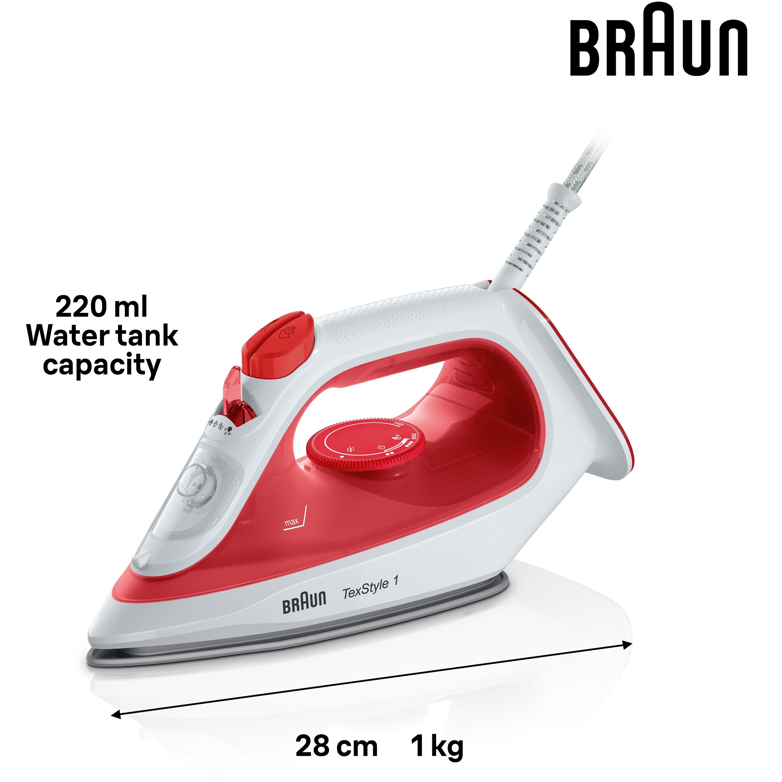 TexStyle 1 BRAUN este cel mai ușor fier de călcat cu abur, conceput pentru a călca rapid și ușor. Este prevăzut cu un strat SuperCeramic și antiadeziv în întreaga gamă, pentru un călcat delicat.
