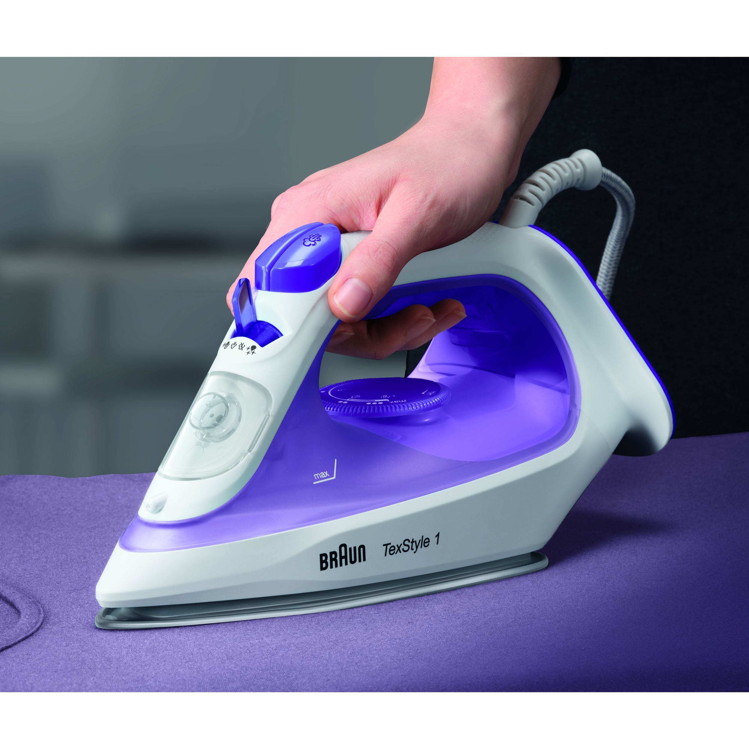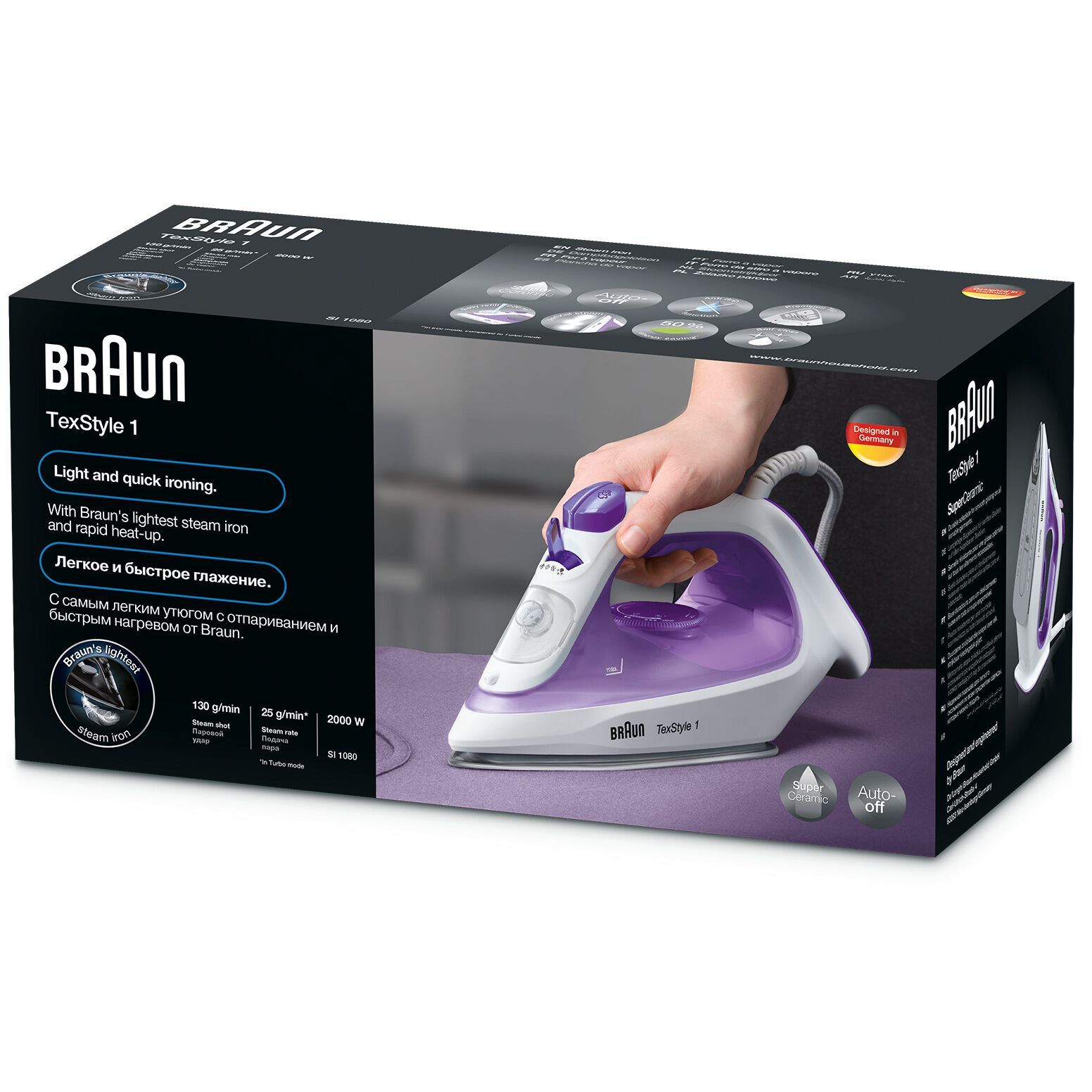 Fier de călcat BRAUN TexStyle 1 SI1080VI - 0127407016, 2000W, Continuu 25g/min, Jet 130g, Rezervor 220ml, Talpă SuperCeramic, Vârf precizie, Cablu 1.9m, Violet