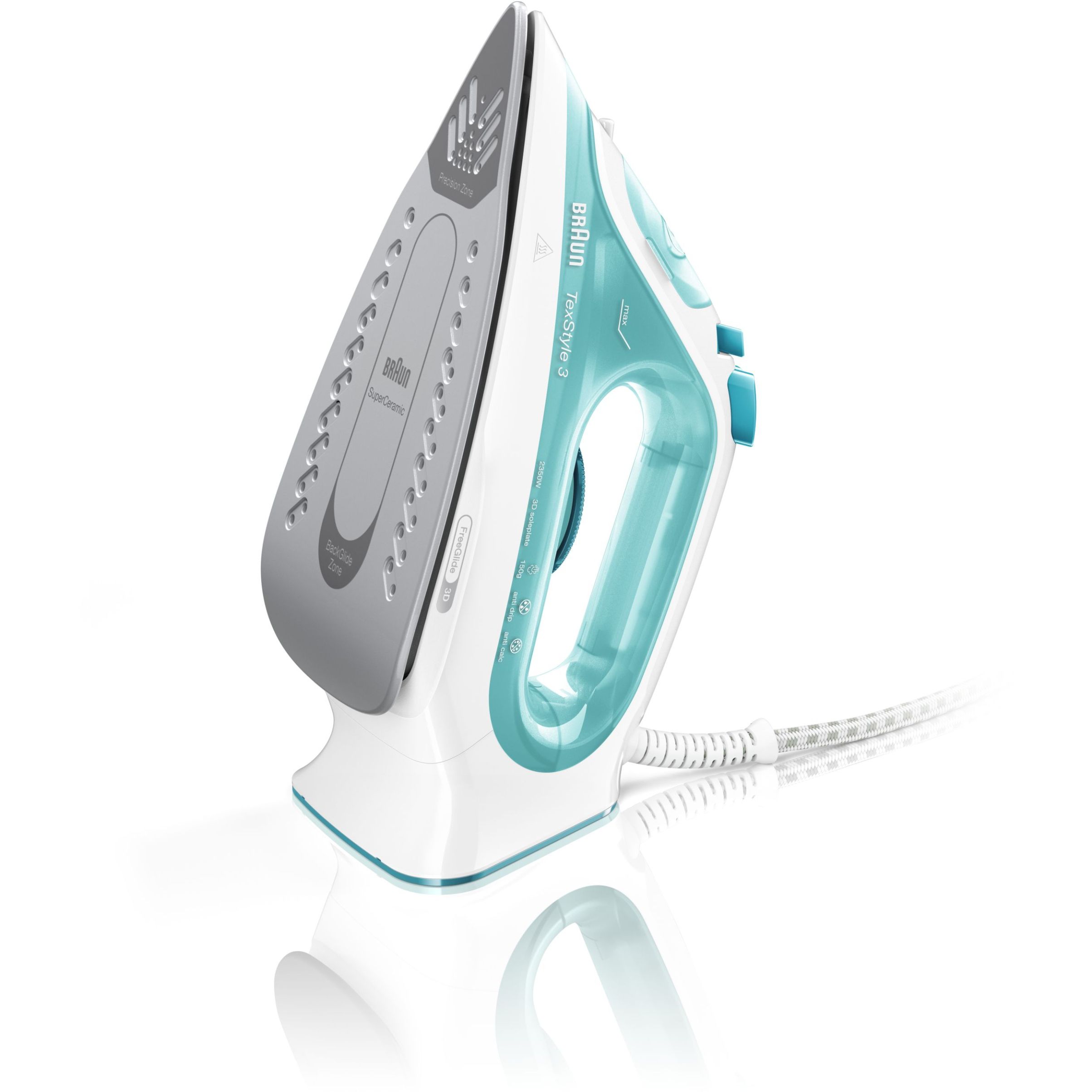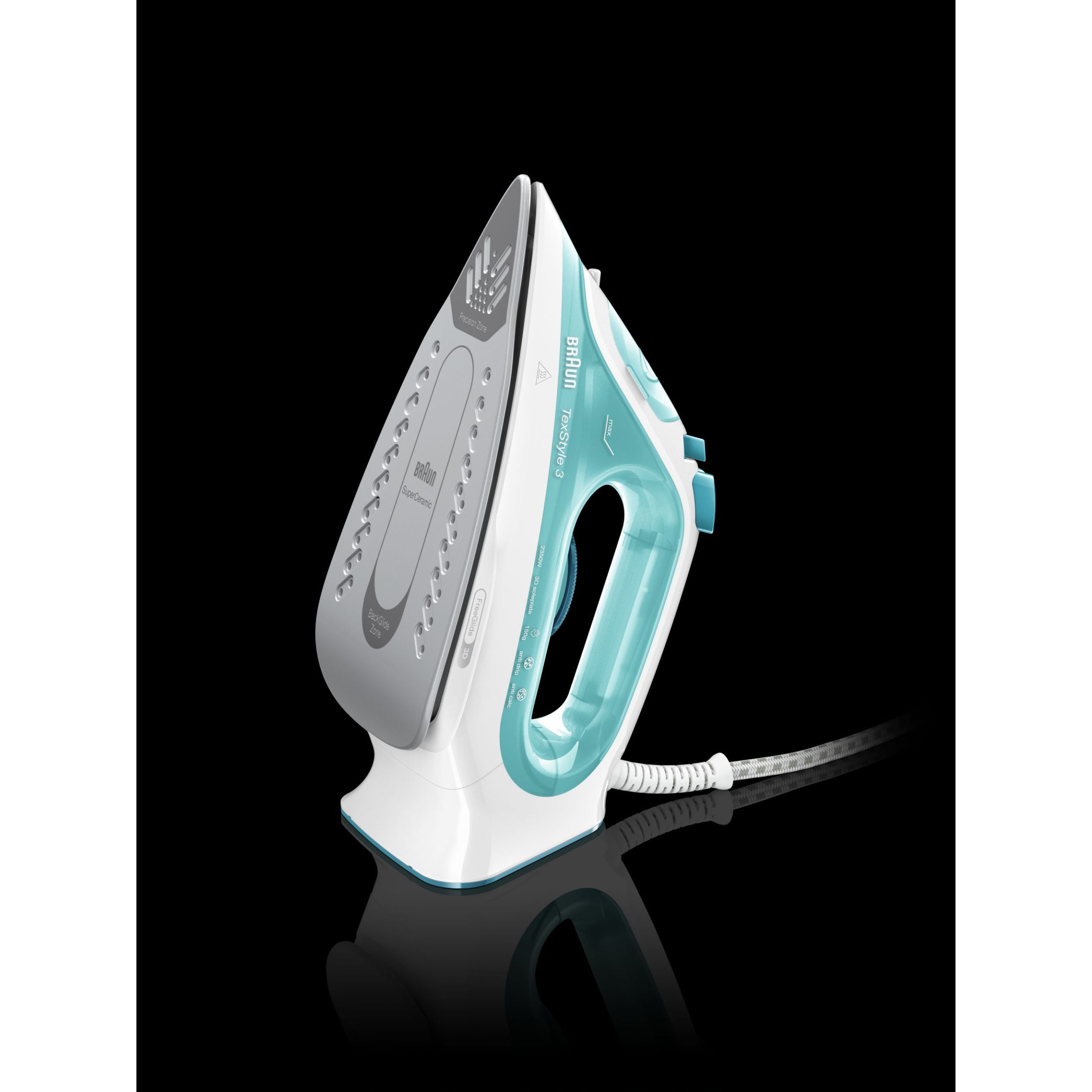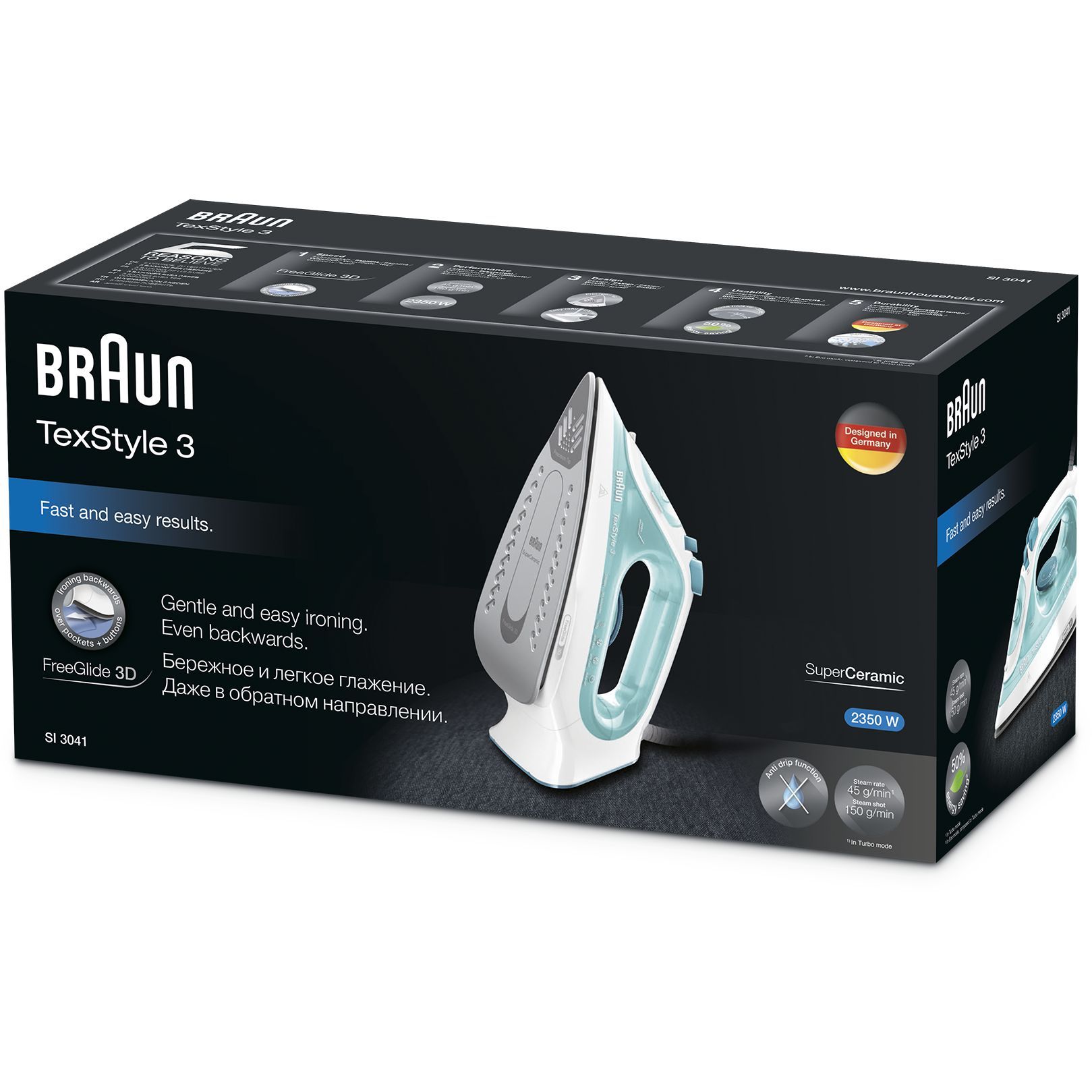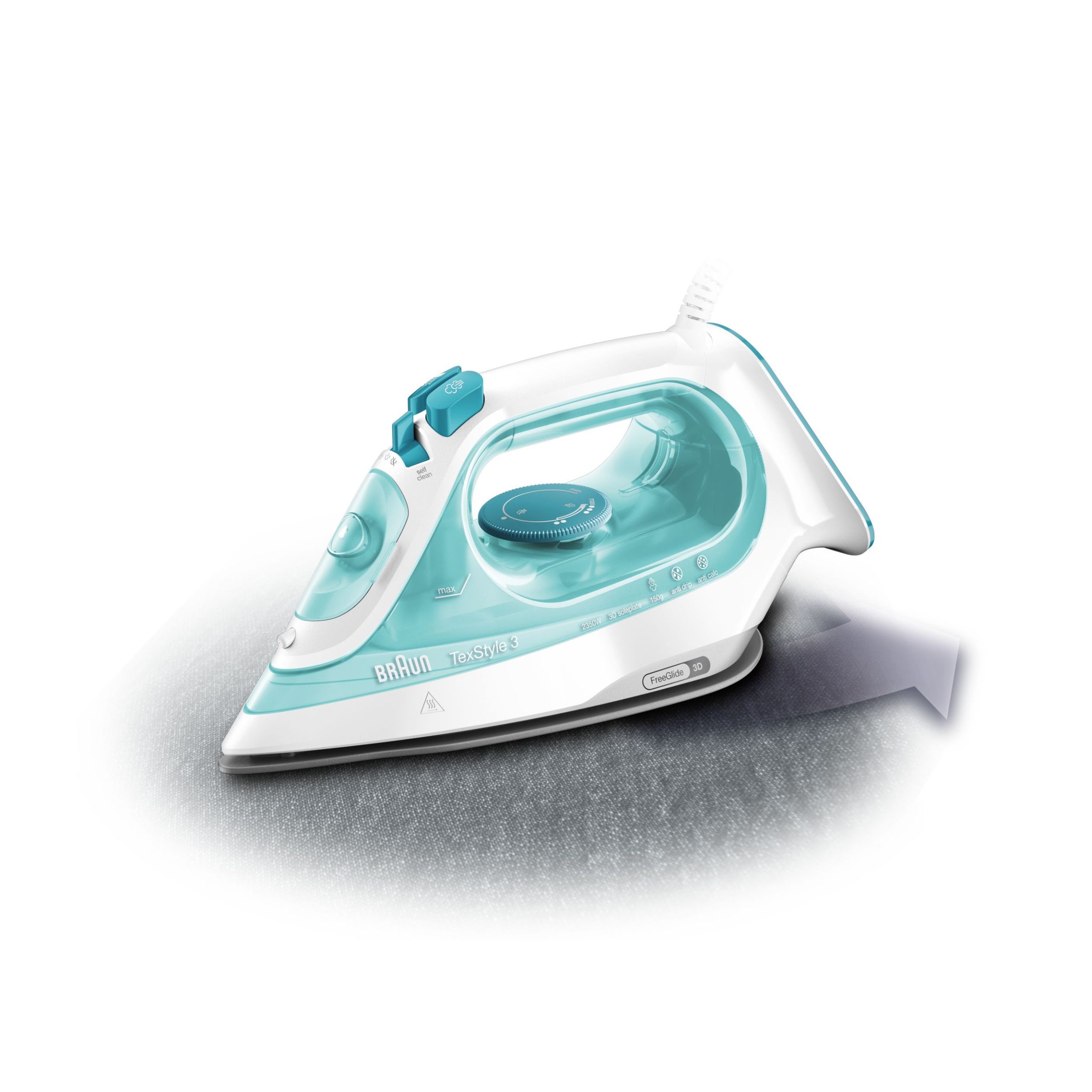 Noul BRAUN TexStyle 3 a fost îmbunătățit cu un nou aspect, o putere mai mare și o performanță mai bună a aburului. Acum este dotat cu prima tehnologie FreeGlide 3D din lume, pentru o capacitate de alunecare de 360°.