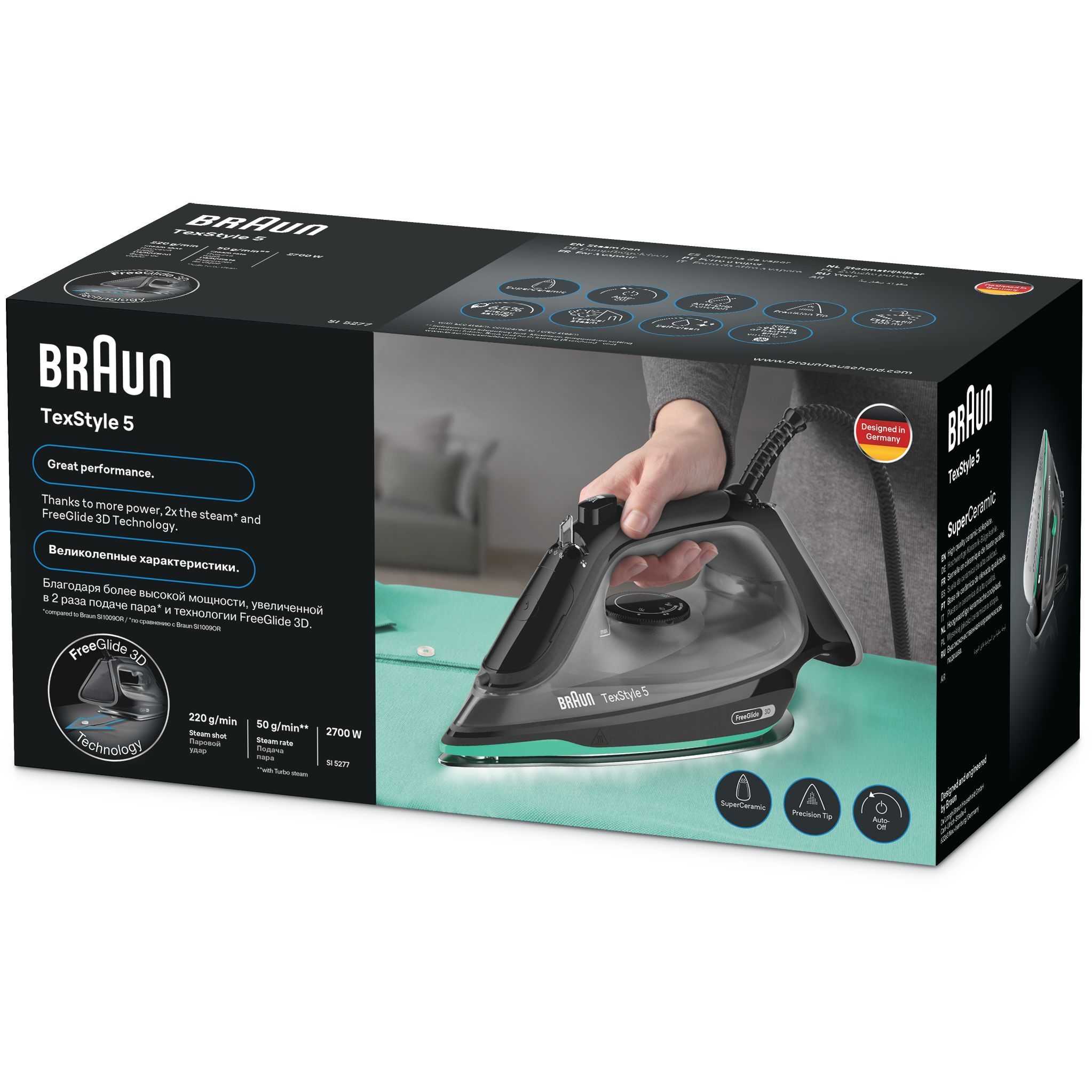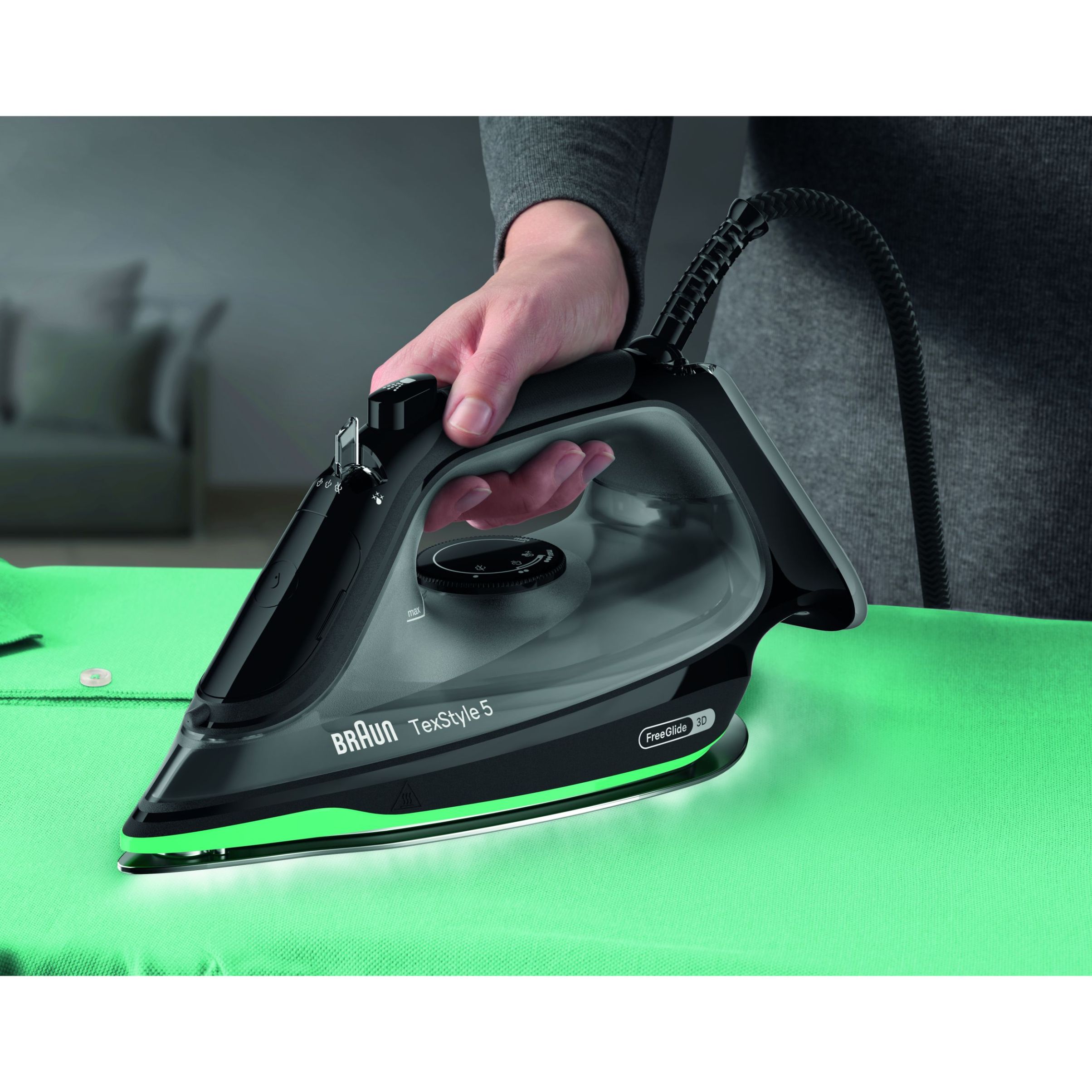 Creat pentru un călcat plăcut și eficient, TexStyle 5 cu tehnologie FreeGlide 3D asigură o alunecare perfectă la 360° peste orice obstacol. Puterea de până la 2700 de wați și aburul reglabil vă ajută să combateți cutele persistente cu ușurință. Talpa SuperCeramic și designul îmbunătățit al marginilor asigură o alunecare lină, în timp ce vârful de precizie atinge fiecare detaliu al materialului - permițând o călcare abilă pentru atingerea rezultatelor dorite.