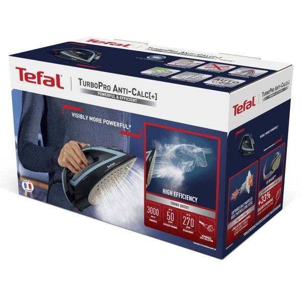 Cu tehnologia de propulsie cu abur concepută pentru a pătrunde adânc în țesătură, TurboPro Anti-Scale oferă rezultate de călcat remarcabile și performanțe de lungă durată. Un nou sistem proiectat de Tefal produce cantități extreme de abur, valorificând puterea propulsiei cu abur pentru un Turbo Boost de 270 g / minut pentru a călca chiar și cele mai încăpățânate cute.