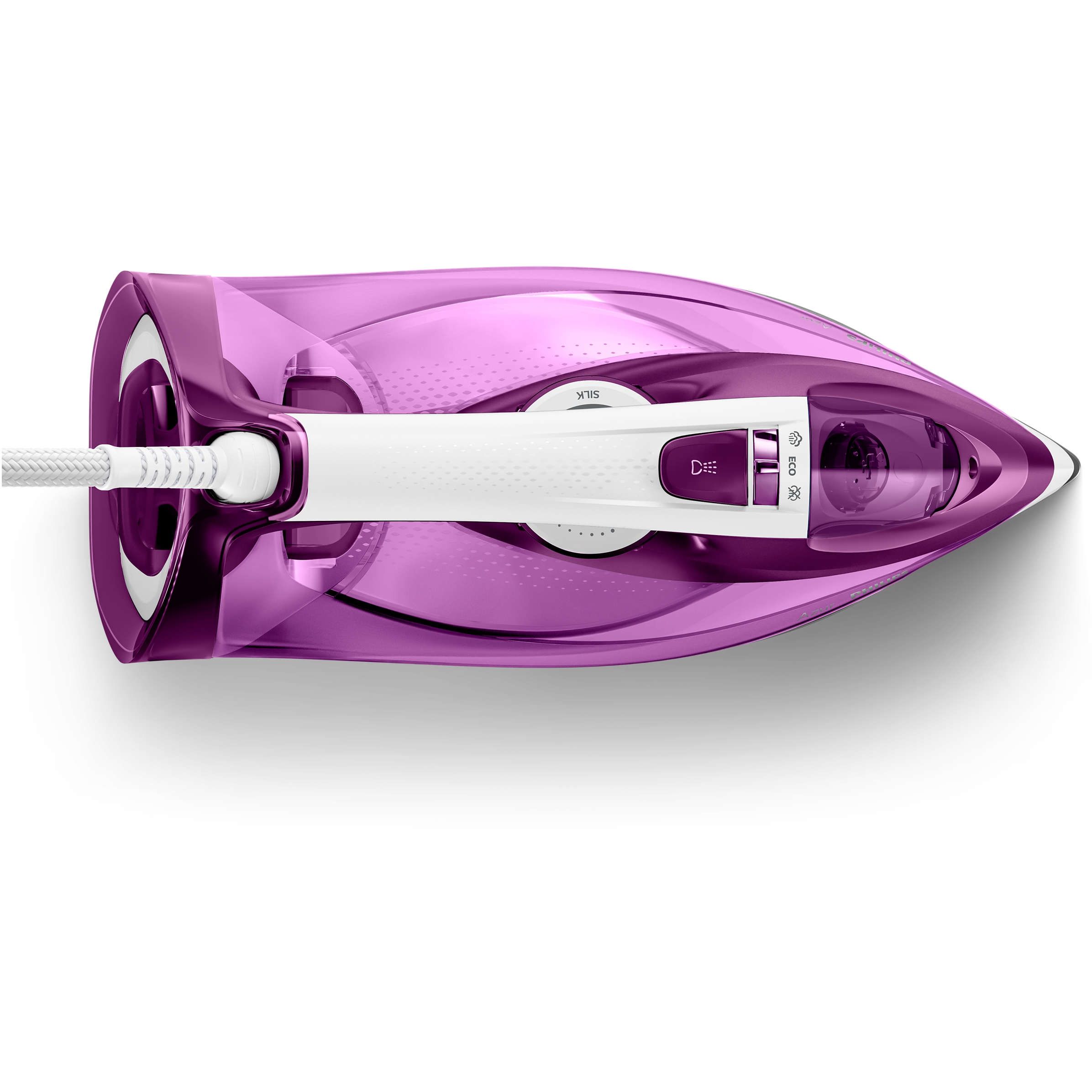 Talpă SteamGlide Plus pentru alunecare lină pe orice material. Talpa noastră exclusivă SteamGlide Plus oferă performanţe excelente de alunecare pe orice material. Antiaderentă, rezistentă la zgârieturi şi uşor de menţinut curată.