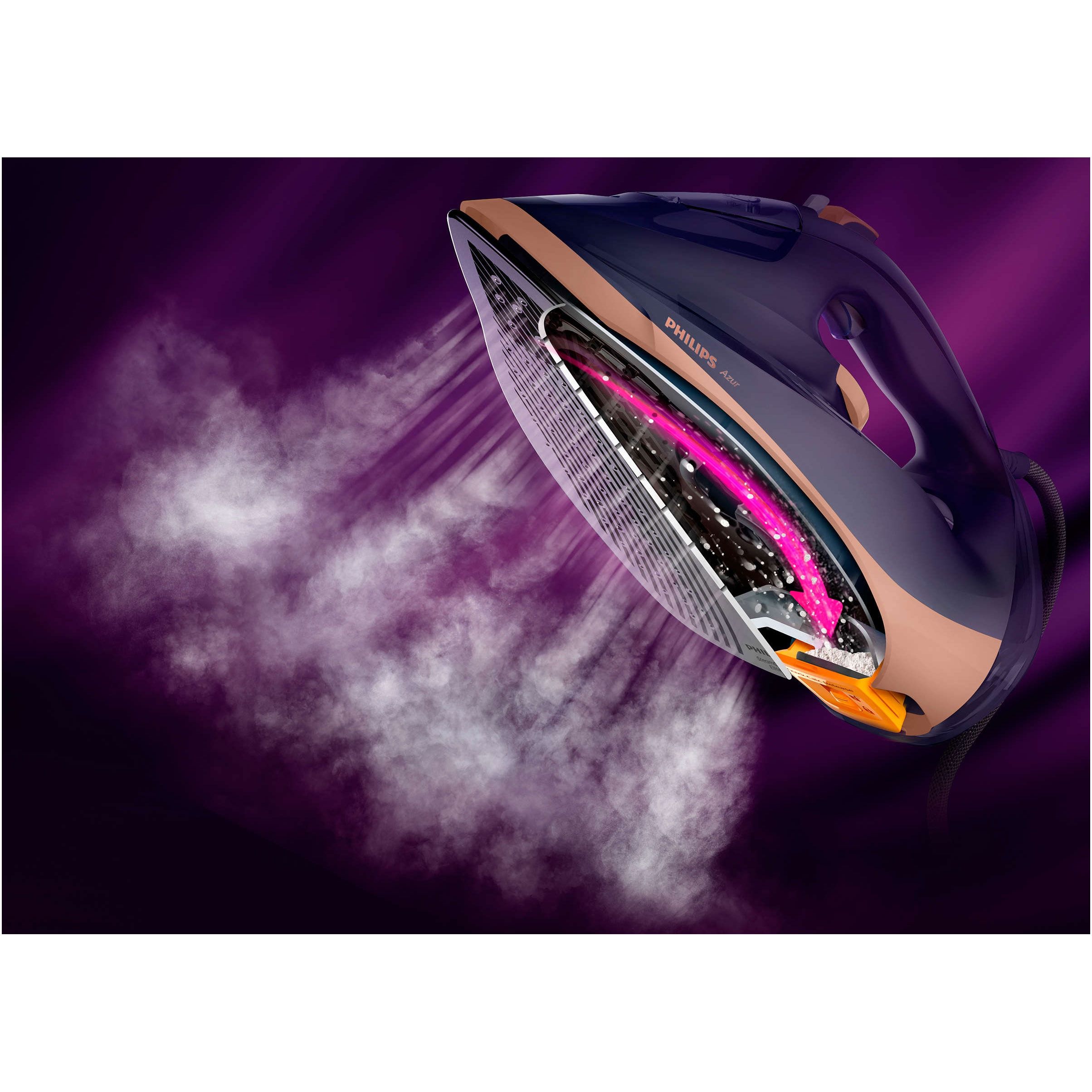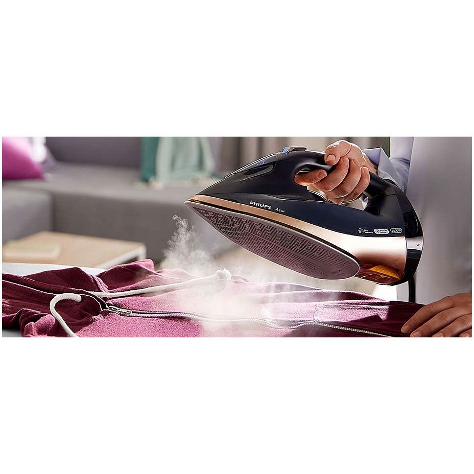 Debit de abur de până la 55 g/min. pentru îndepărtarea mai rapidă a cutelor. Graţie debitului de abur puternic şi constant, în ţesătură pătrunde cu până la 50% mai mult abur pentru netezirea mai rapidă a cutelor.