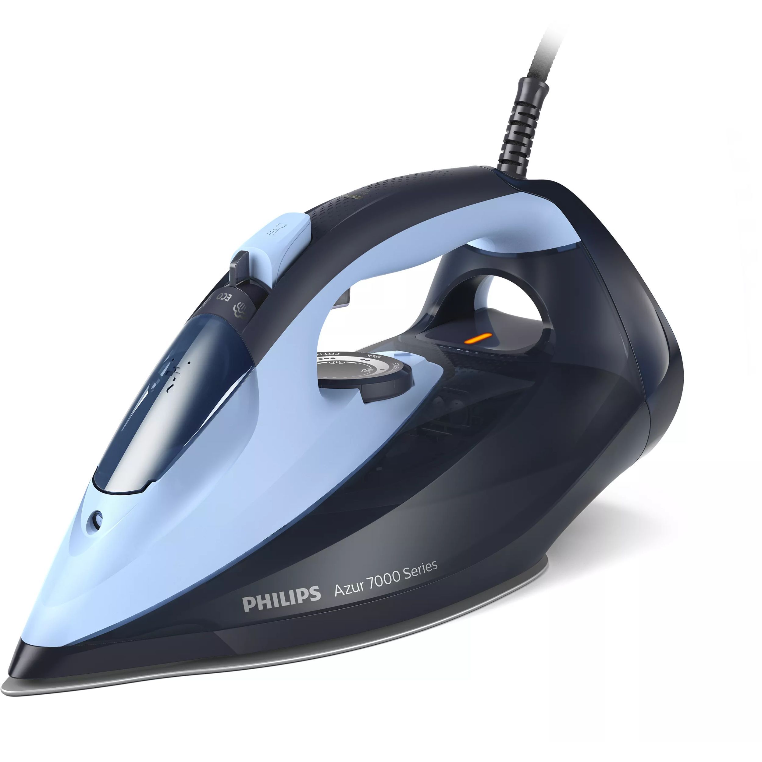 Fier de călcat cu abur Philips Azur Seria 7000 DST7041/20, 2800W, Continuu 50g/min, Jet 250g, Rezervor 300ml, Talpă SteamGlide Elite, Oprire automată, C2m, G1.82kg, Light and Dark Blue
