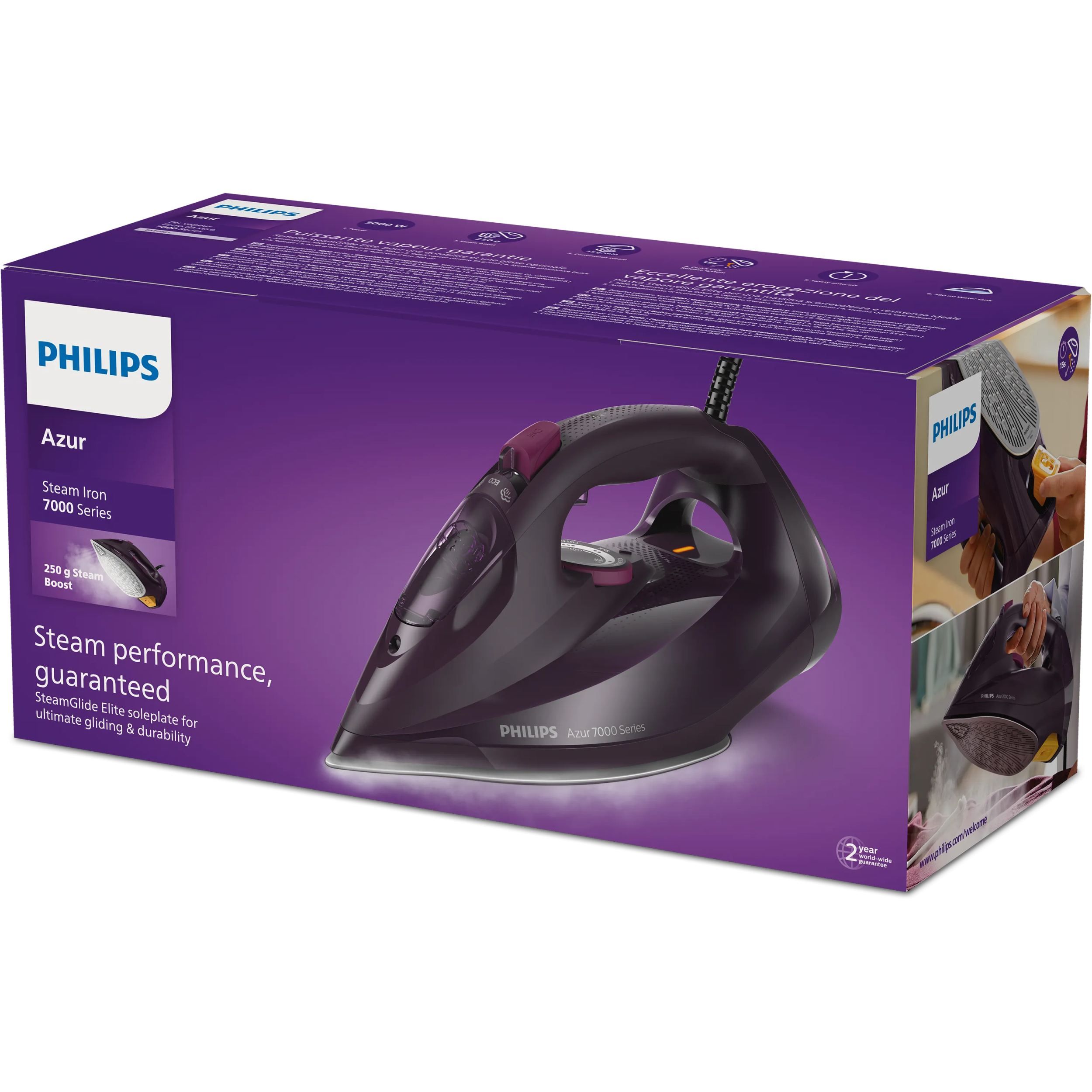 Fier de călcat cu abur Philips Azur Seria 7000 DST7061/30, 3000W, Continuu 55g/min, Jet 250g, Rezervor 300ml, Talpă SteamGlide Elite, Oprire automată, C2m, G1.82kg, Dark Magic Violet