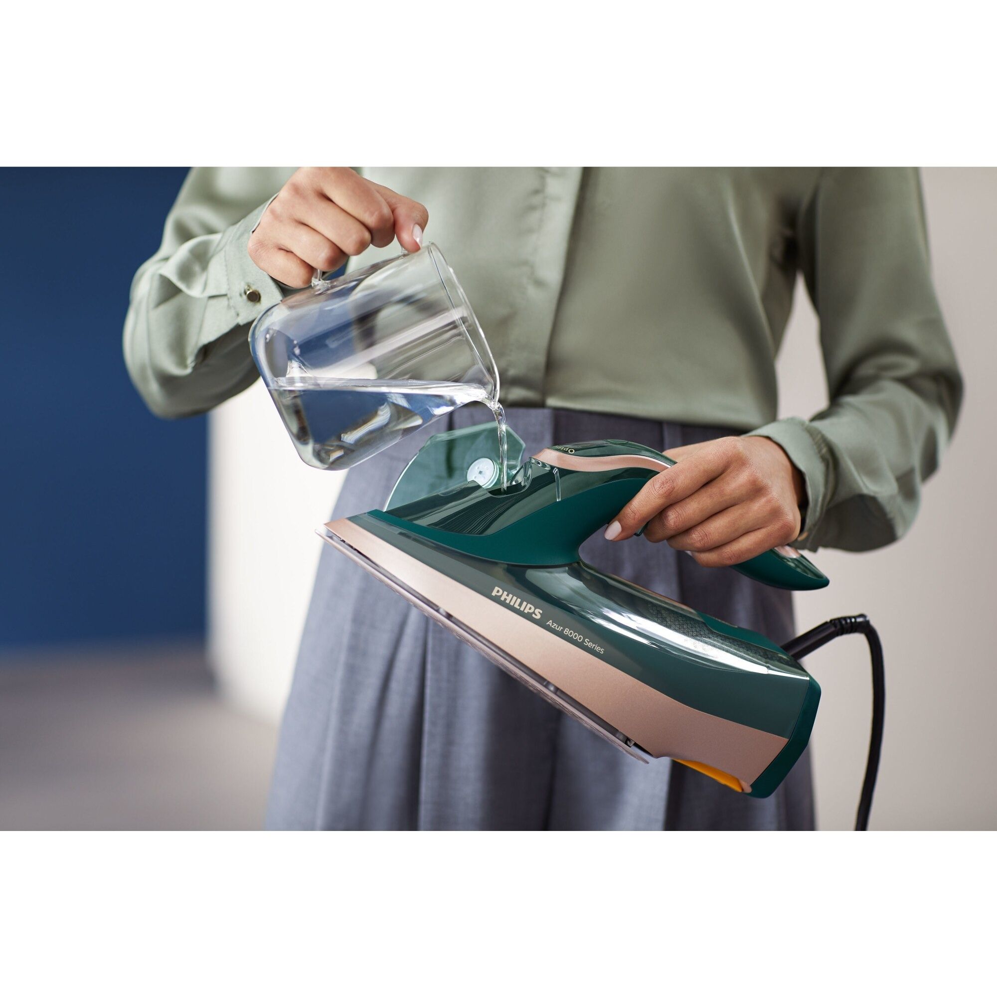 Rezultate optime printr-o singură mişcare. Putere ridicată de călcat cu noul Philips Azur seria 8000. Graţie tehnologiei turbo cu un jet de abur de 260g, poţi îndepărta chiar şi cele mai persistente cute printr-o singură mişcare. Aparatul este gata de utilizare în mod rapid, datorită puterii de 3000 W, şi oferă rezultate optime graţie aburului puternic şi continuu.
