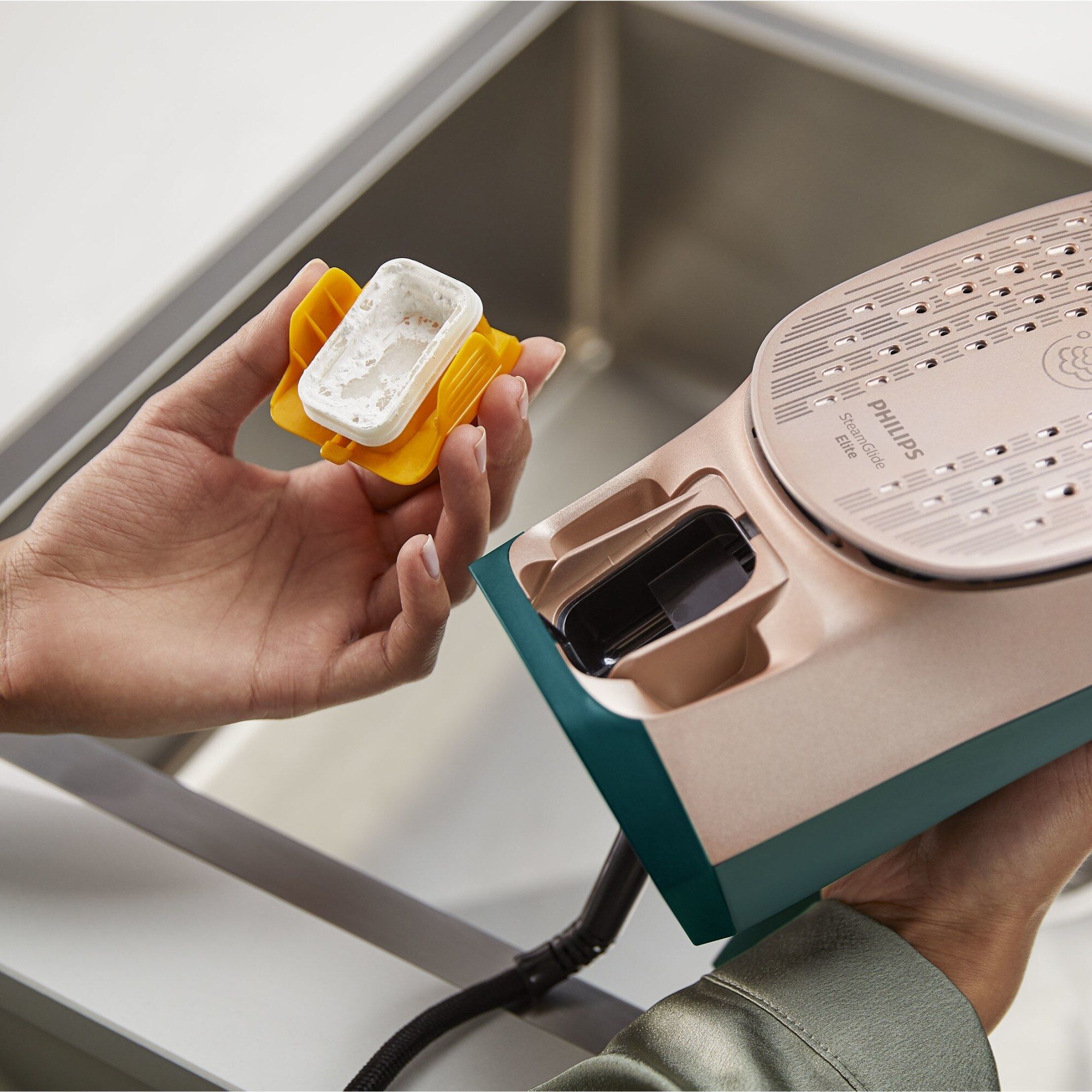 Talpă SteamGlide Elite pentru alunecare şi durabilitate optime. Glisaţi uşor peste cute cu talpa SteamGlide Elite extrem de netedă, care este delicată cu hainele dvs. Talpa SteamGlide Elite foarte netedă este durabilă, rezistentă la zgârieturi şi uşor de curăţat.