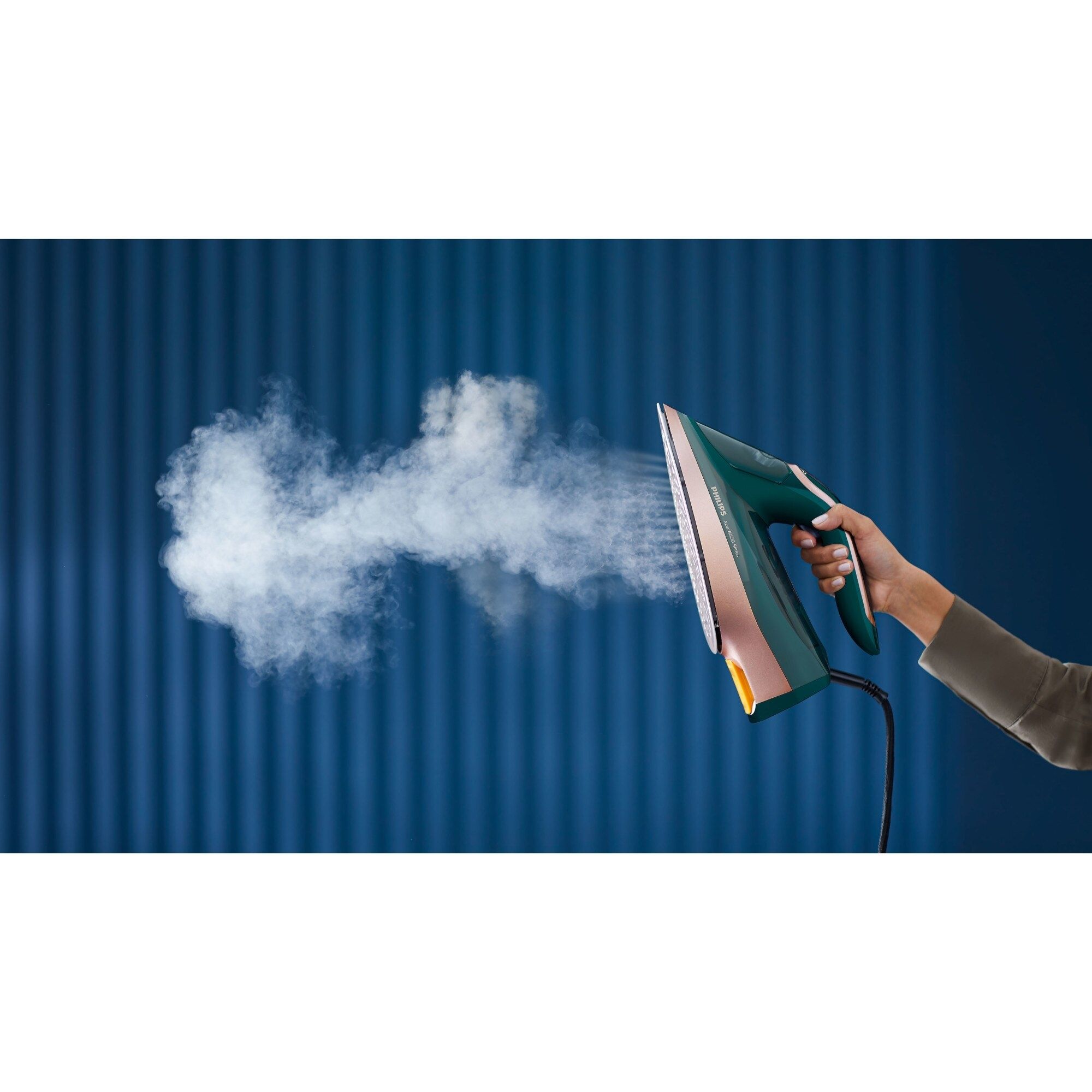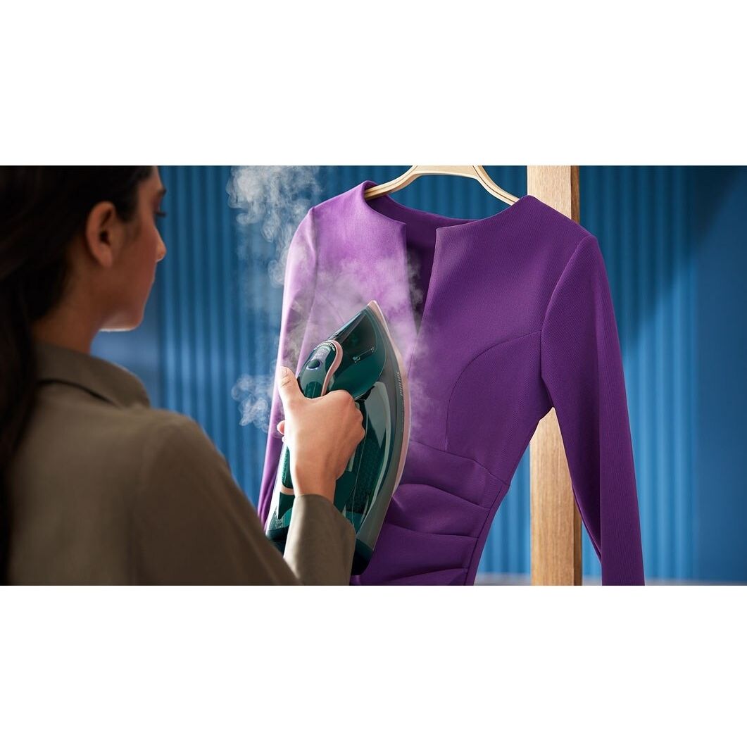 Jet de abur continuu puternic de până la 70 g/min. Cu un debit de abur continuu de 70 g/min, nu se iroseşte nicio trecere peste haine, astfel încât să poţi îndepărta cutele mai rapid.