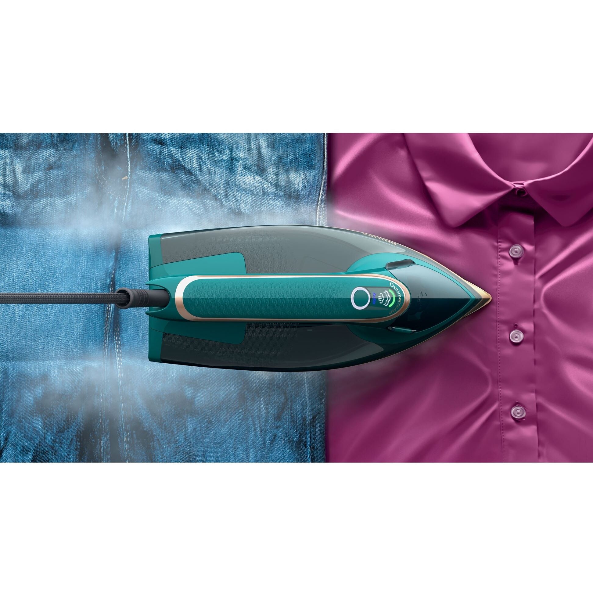 O singură setare de temperatură optimă, garantat fără arsuri. O singură setare optimă pentru toate materialele care pot fi călcate. Garantat fără arsuri. Datorită tehnologiei OptimalTEMP, garantăm că acest fier de călcat nu va produce arsuri pe niciun material ce poate fi călcat şi poţi călca orice, de la blugi la mătase, de la in la caşmir în siguranţă, în orice ordine, fără a aştepta reglarea temperaturii sau sortarea hainelor.