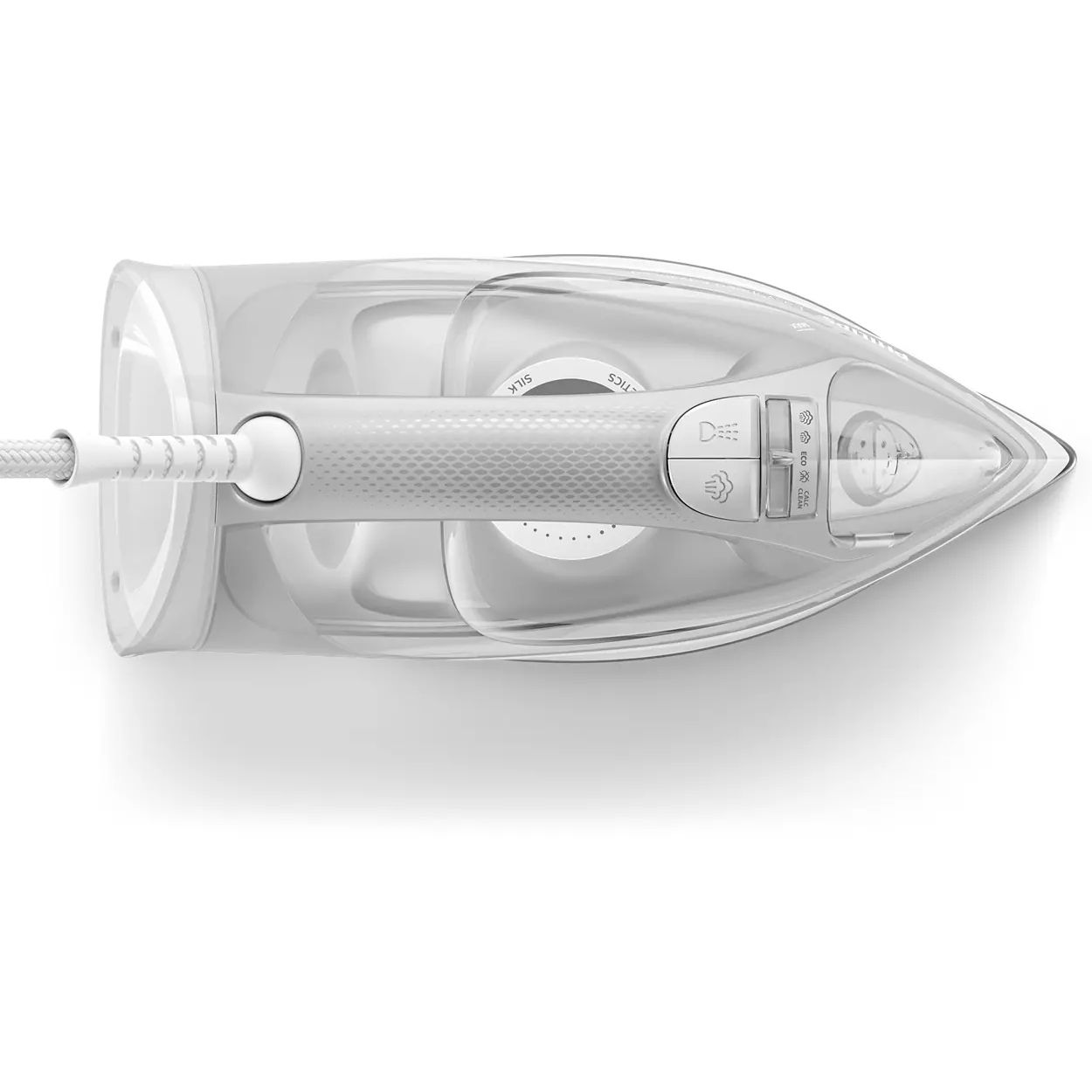 Vârf cu precizie triplă, pentru control şi vizibilitate optime. Vârful este precis în 3 moduri. Dispune de un vârf ascuţit, un canal pentru nasturi şi un cap cu design elegant. Vârful cu triplă precizie îţi permite accesul chiar şi la porţiunile dificil de călcat, cum ar fi în jurul nasturilor sau între pliuri.
